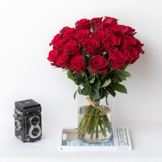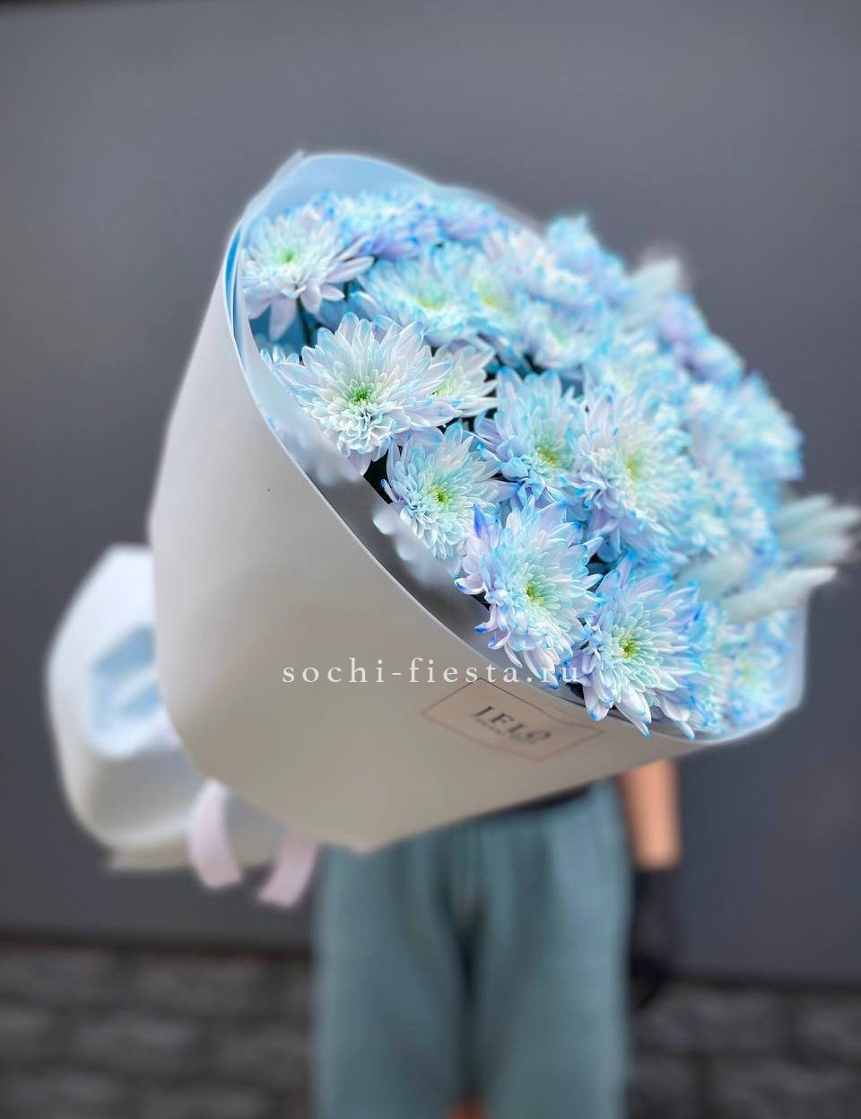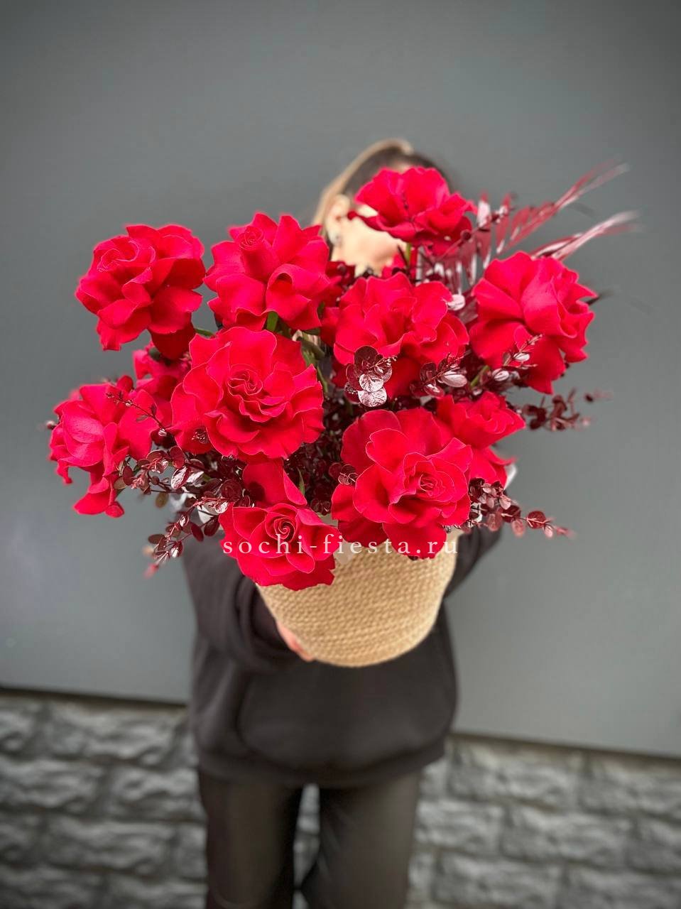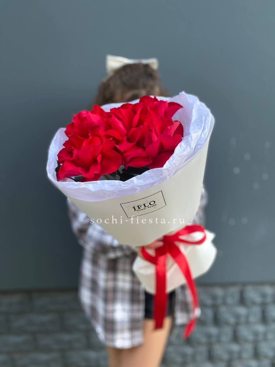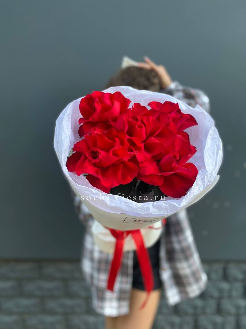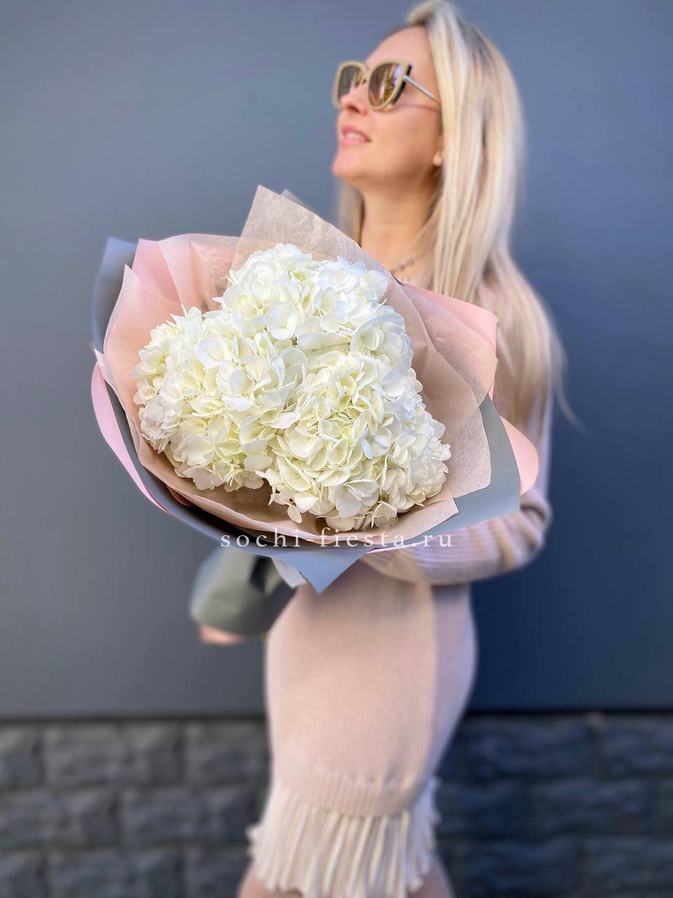 Одиннадцать вывернутых бутонов WhiteNice раскрываются волнами лепестков с матовым свечением. Эвкалипт добавляет воздуха между соцветиями. Французская селекция в лаконичной подаче.