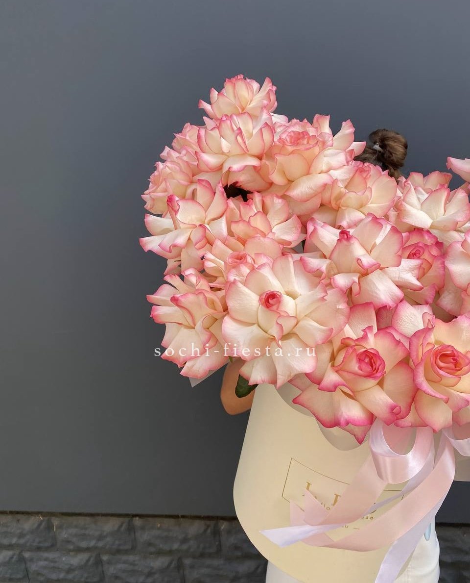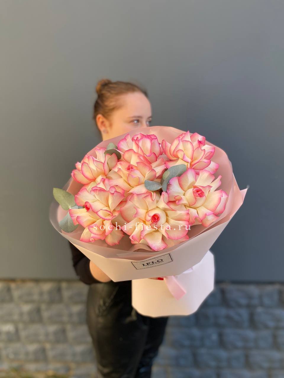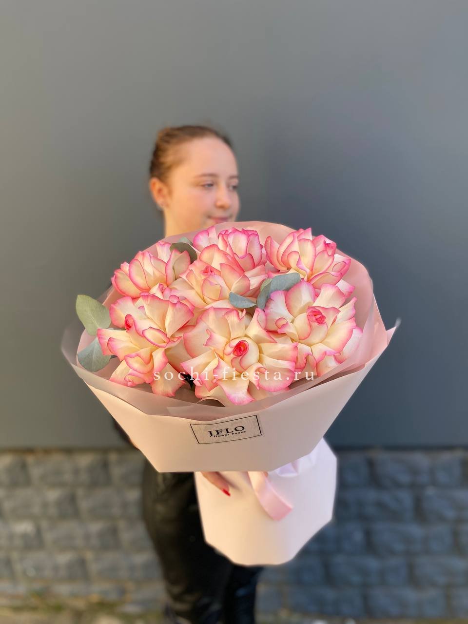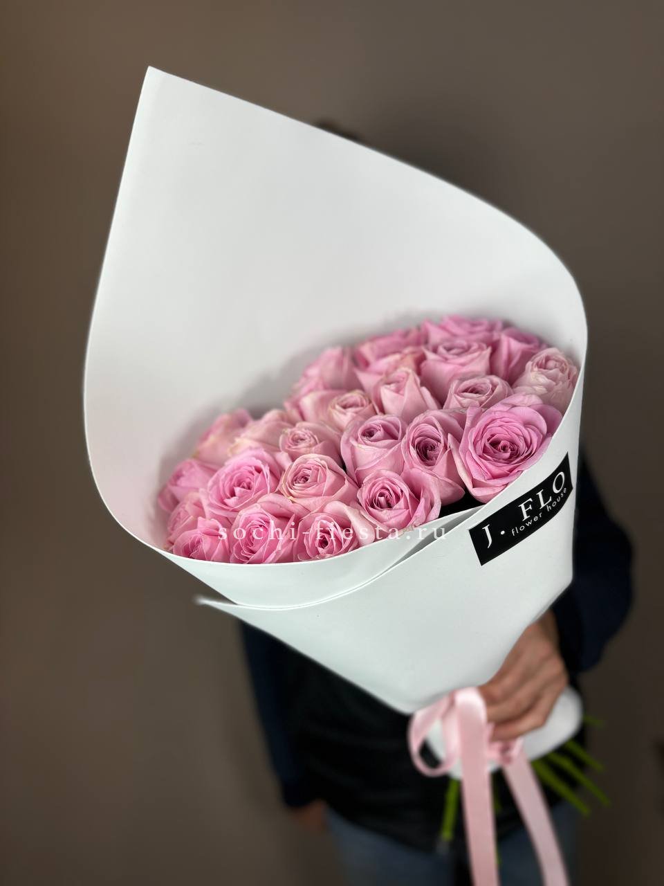 Состав букета на фотографии: 21 кенийских роз, лента, упаковка.