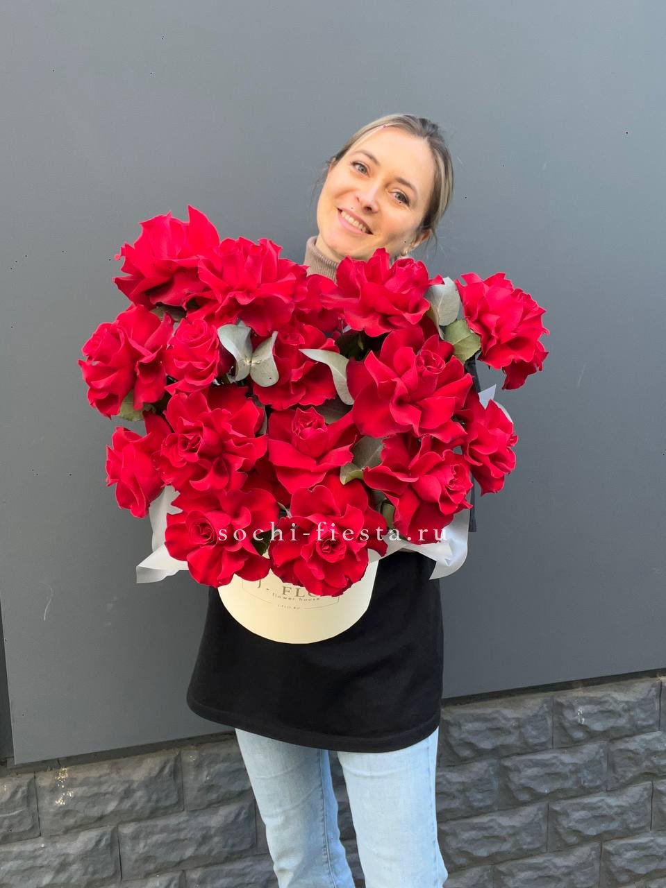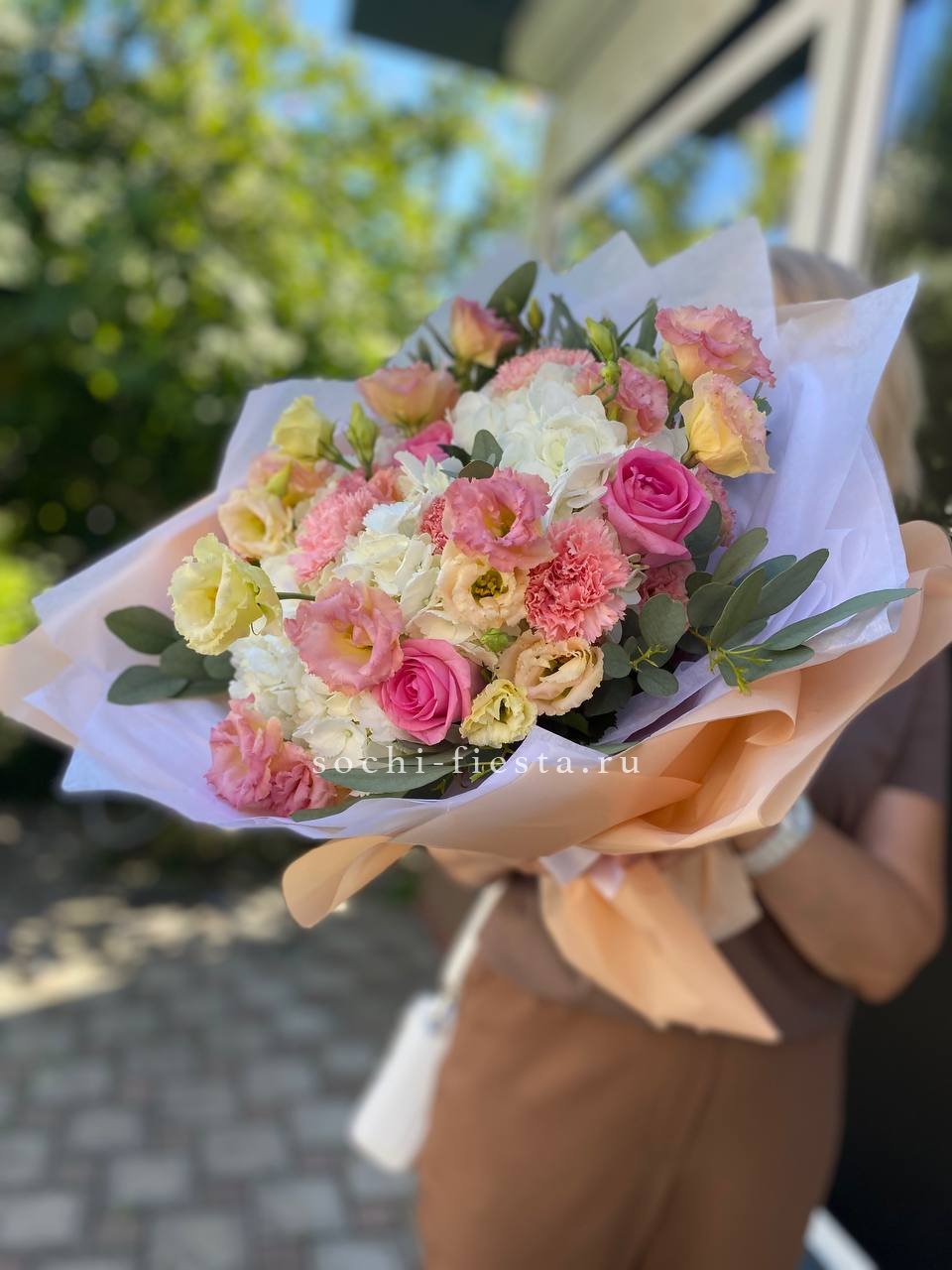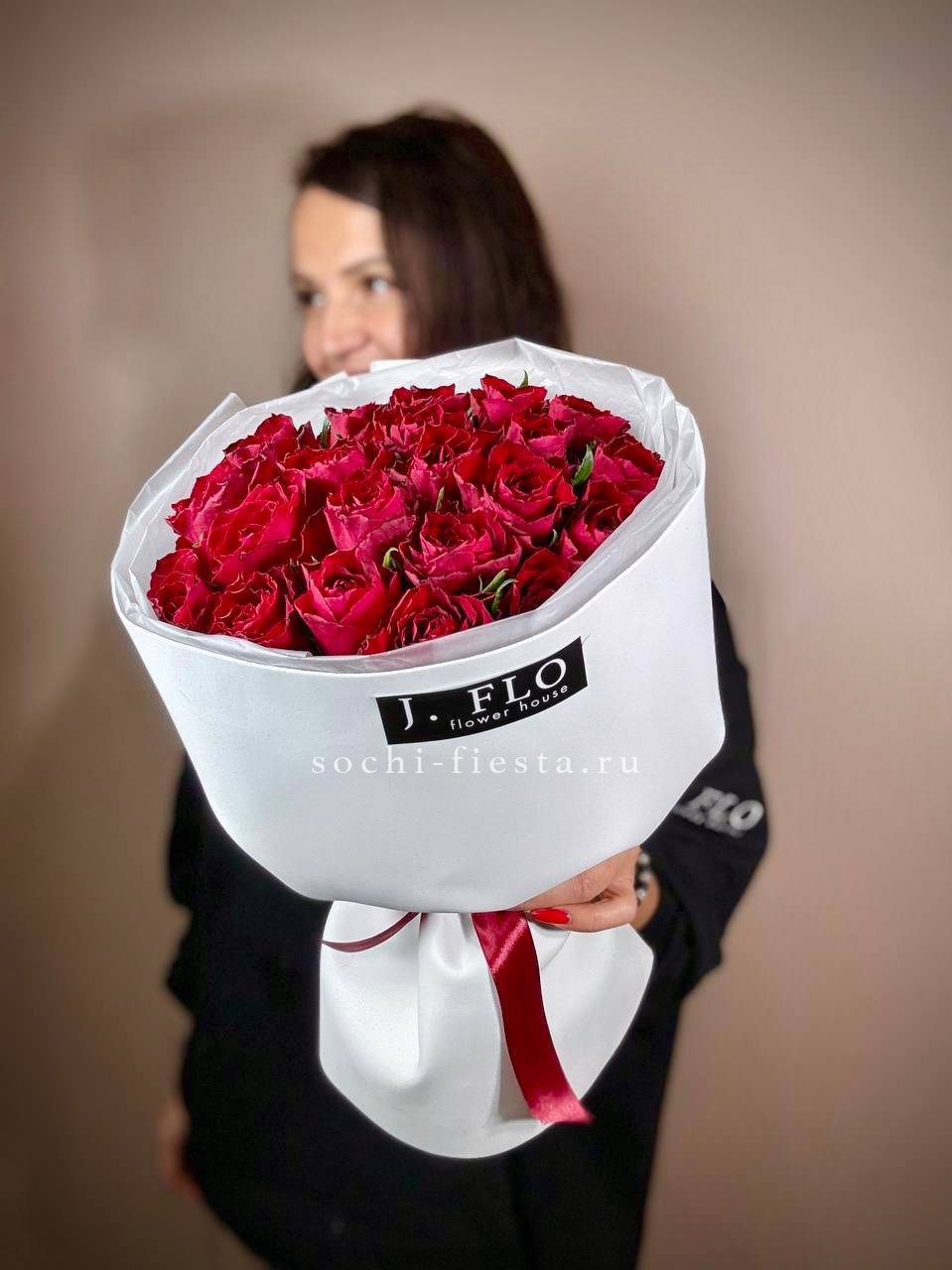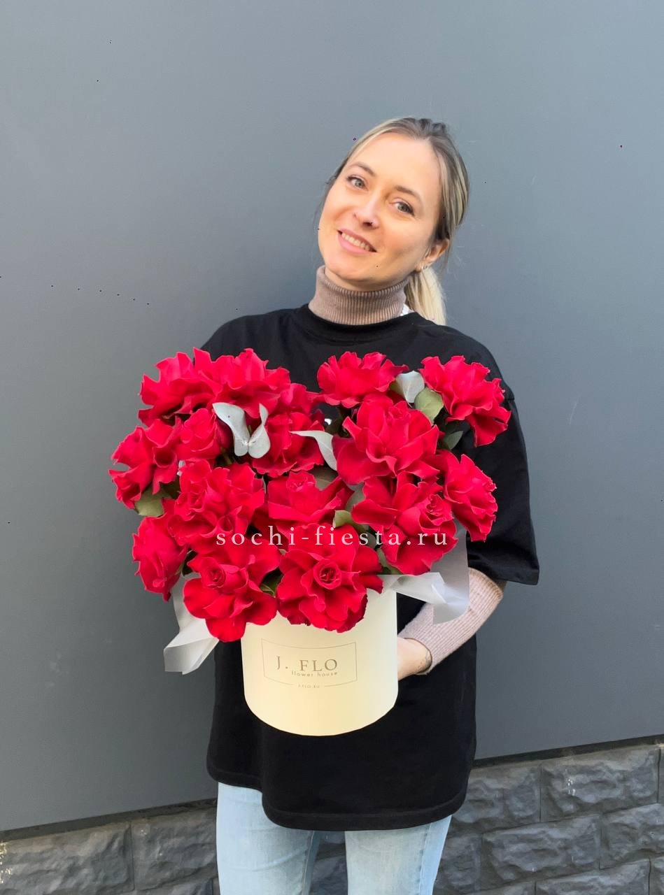 Этот букет — словно облако нежности и мечтательности. Бутончики кустовых роз, напоминающие тугие шарики, имеют светлый кремовый цвет с легким розовым оттенком. В сочетании с веточками свежего эвкалипта они создают атмосферу легкости и романтики. Это идеальный подарок для выражения самых светлых и теплых чувств, который растопит любое сердце.