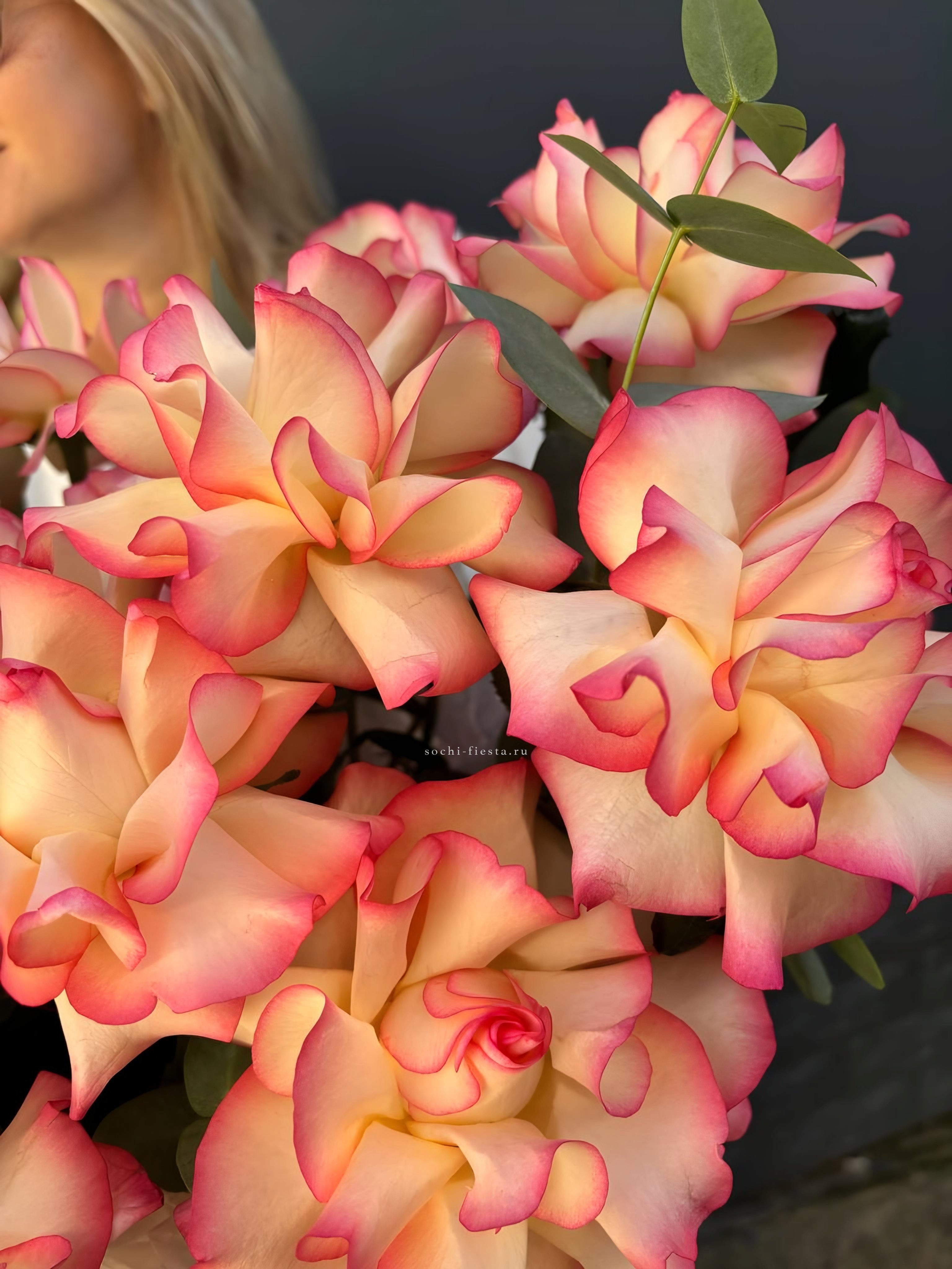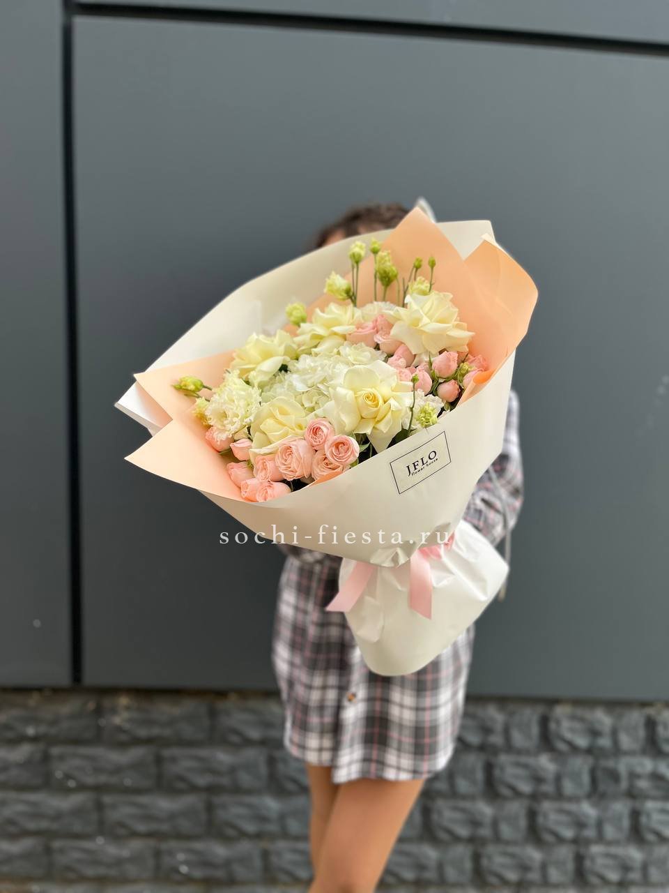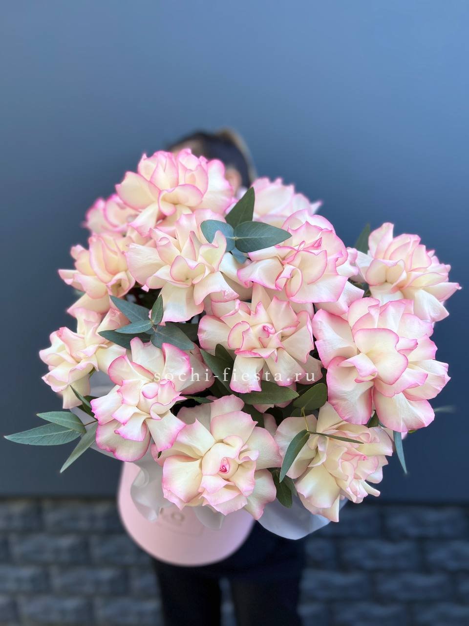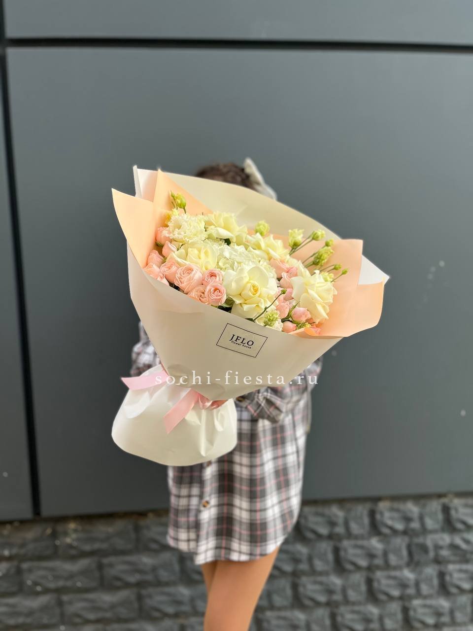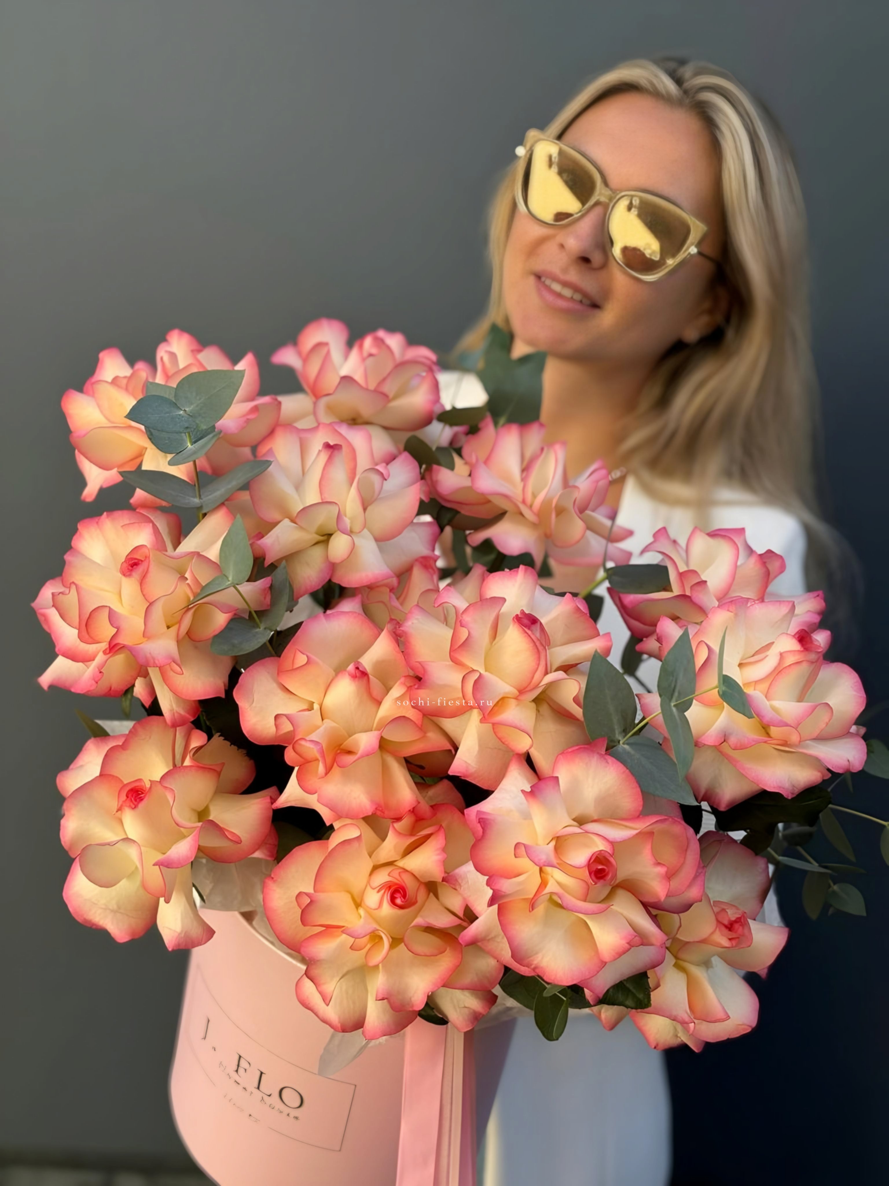 Яркие герберы и белоснежные лилии создают жизнерадостную композицию с чистым силуэтом. Озотамнус добавляет воздушности, а розы завершают образ свежестью и лёгкостью.