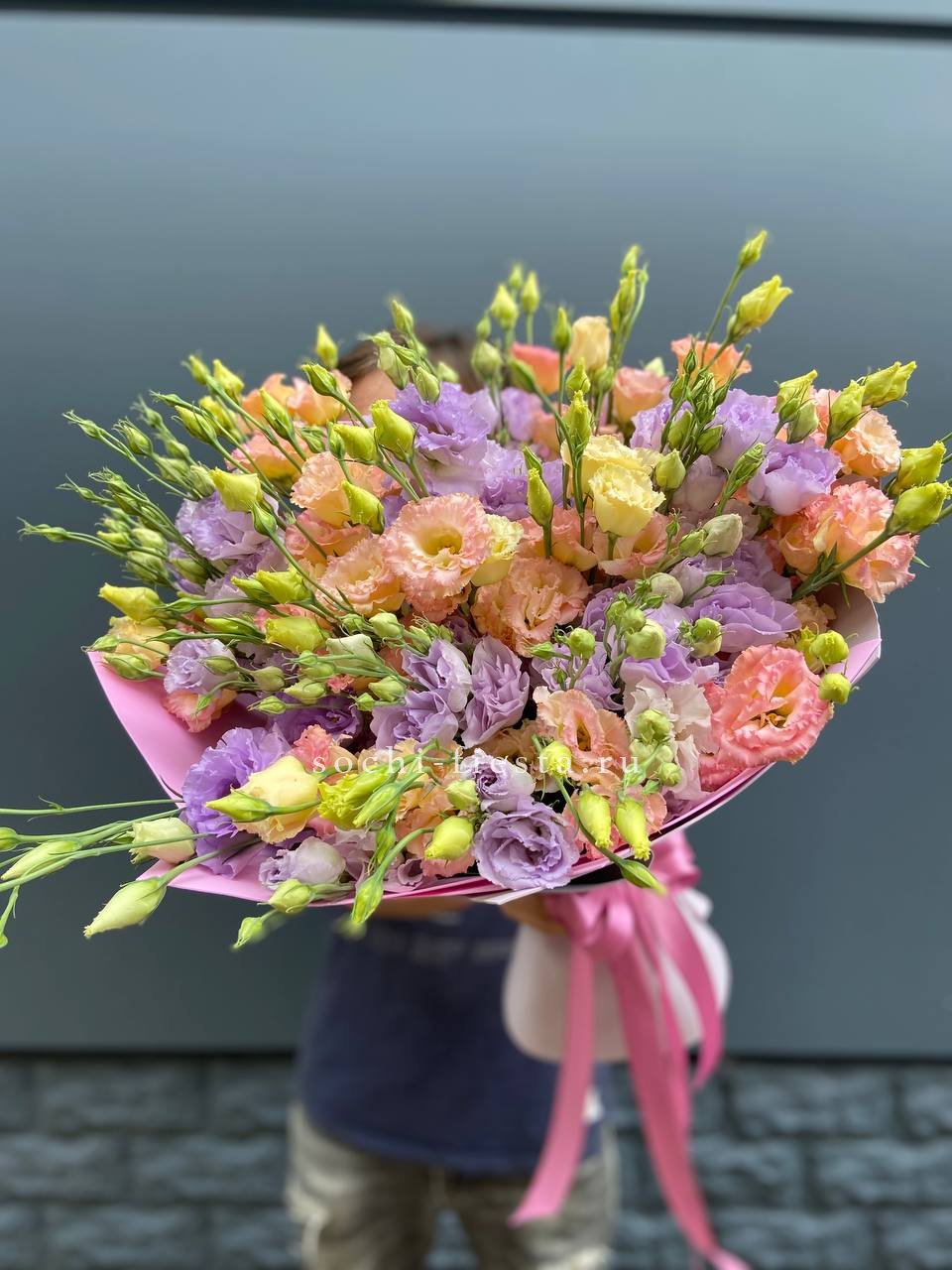 эустома - 21 шт., лента, упаковка фоамиран. Изначальная цена указана за букет Мини эустом- 7 шт. Стандарт: 21 шт. эустомVIP: 41 шт.