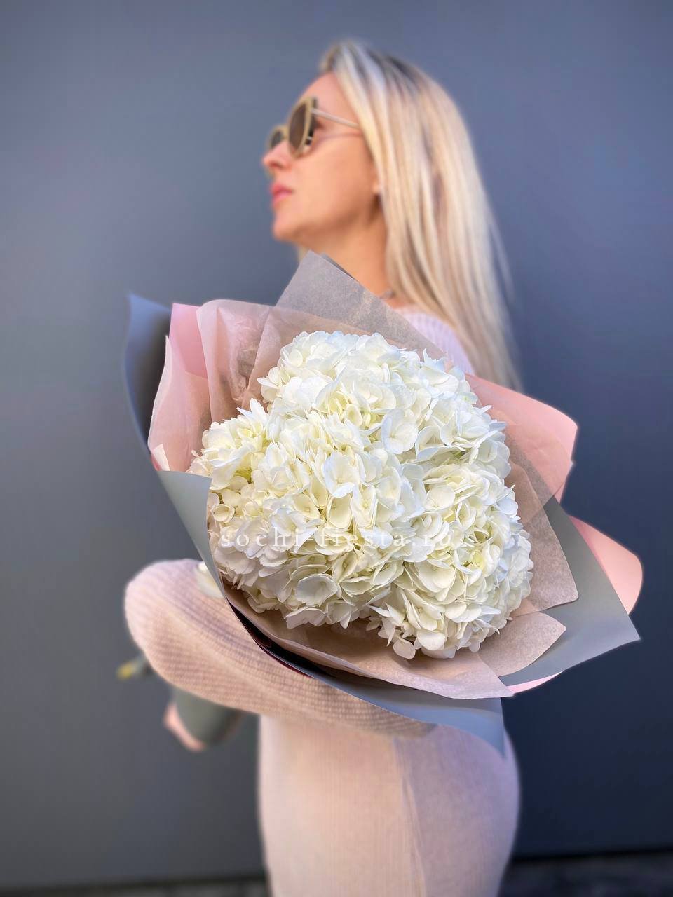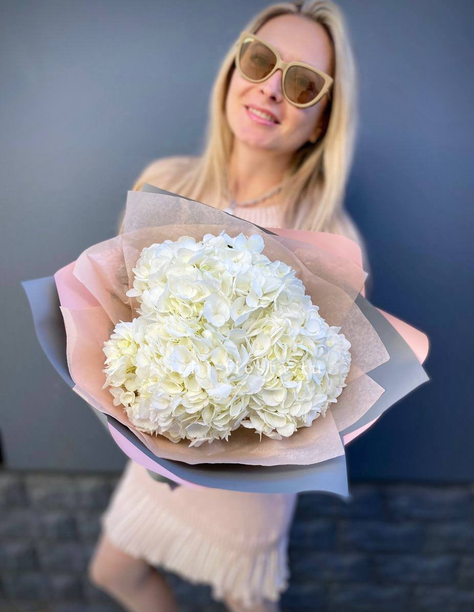 Для заказа товара "Букет из трёх белых гортензий" с доставкой в Элисте нажмите