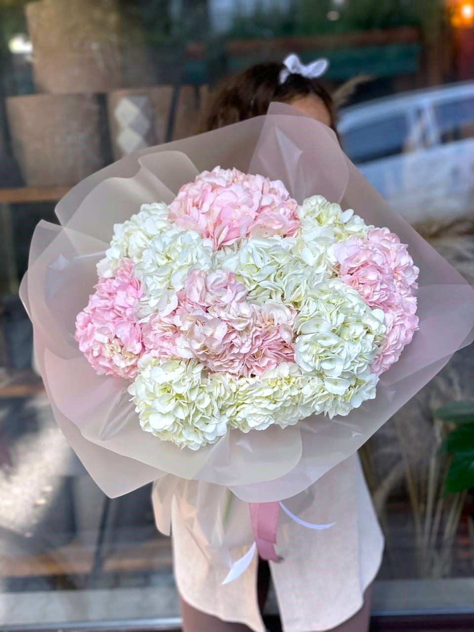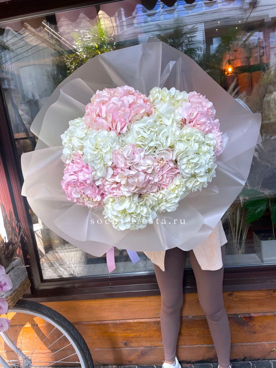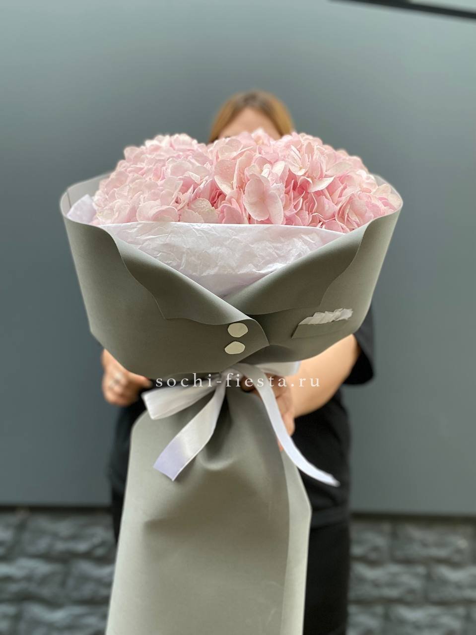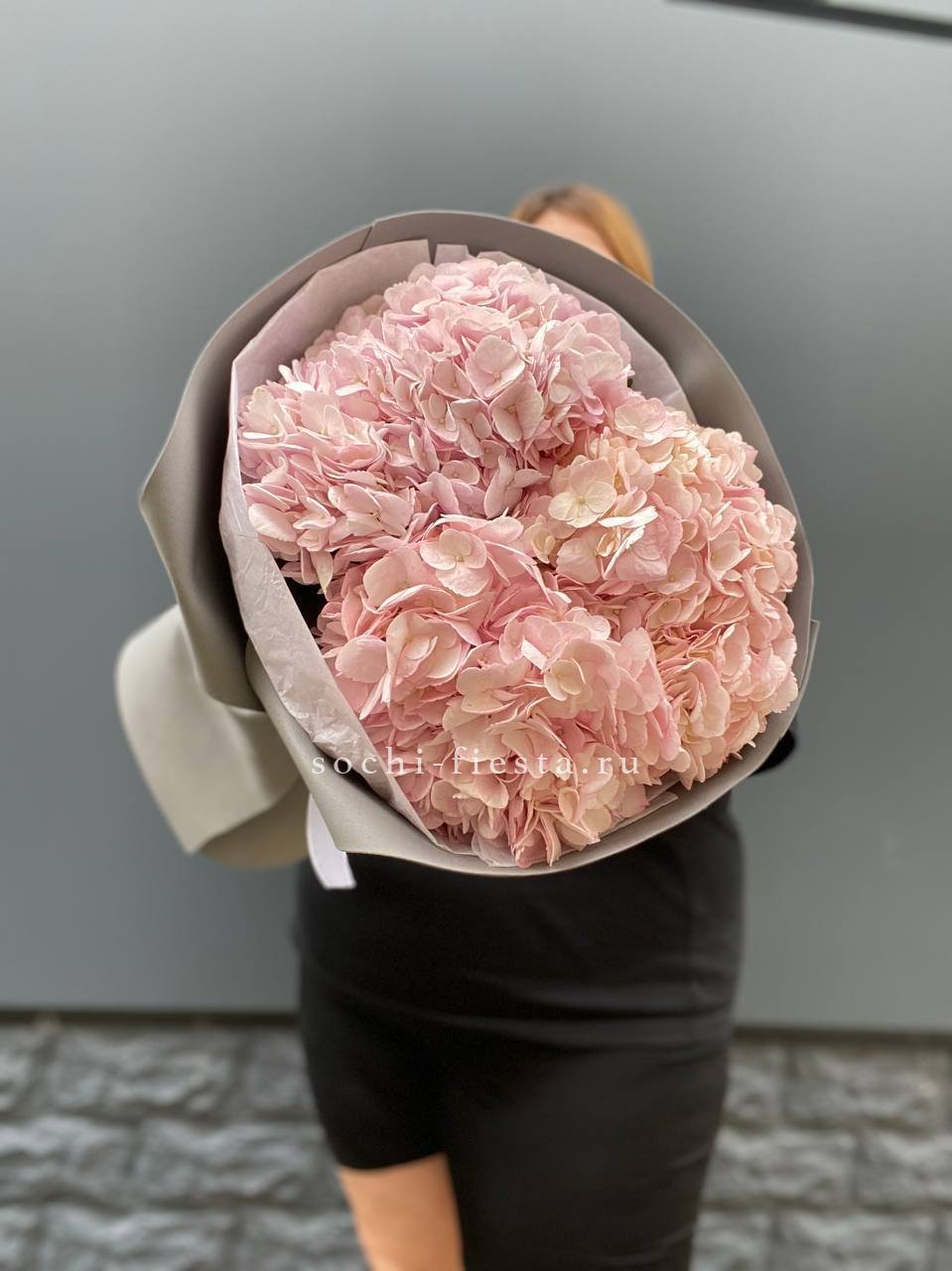 гортензия, лента, дизайнерская упаковка.