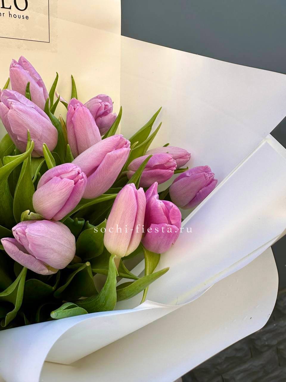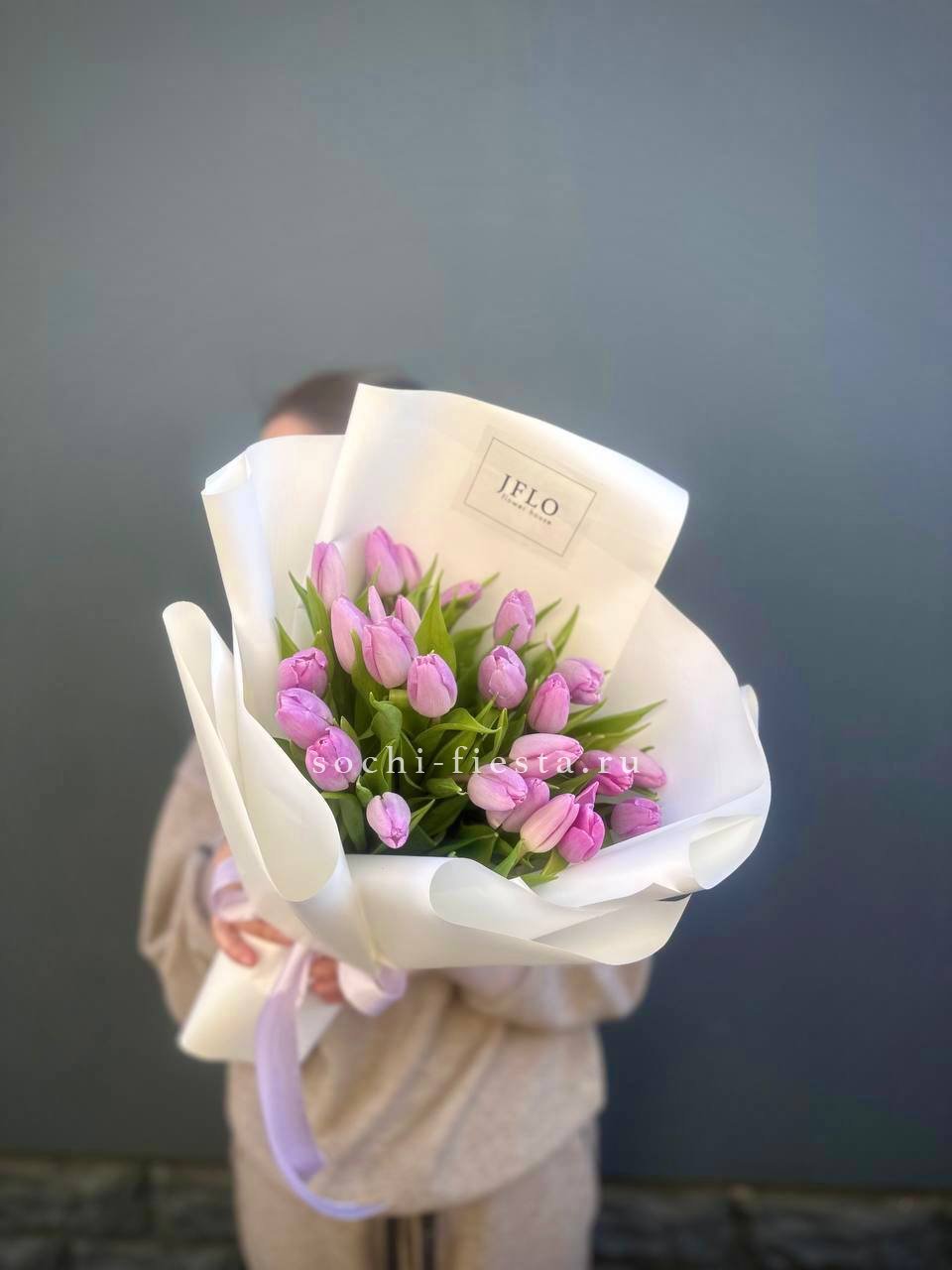 Двадцать пять тюльпанов сиреневого оттенка собраны в плотный монохромный букет. Бутоны свежие и упругие, каждый стебель направлен строго вверх. Лаконичная композиция для тех, кто ценит чистоту линий и весеннюю свежесть.