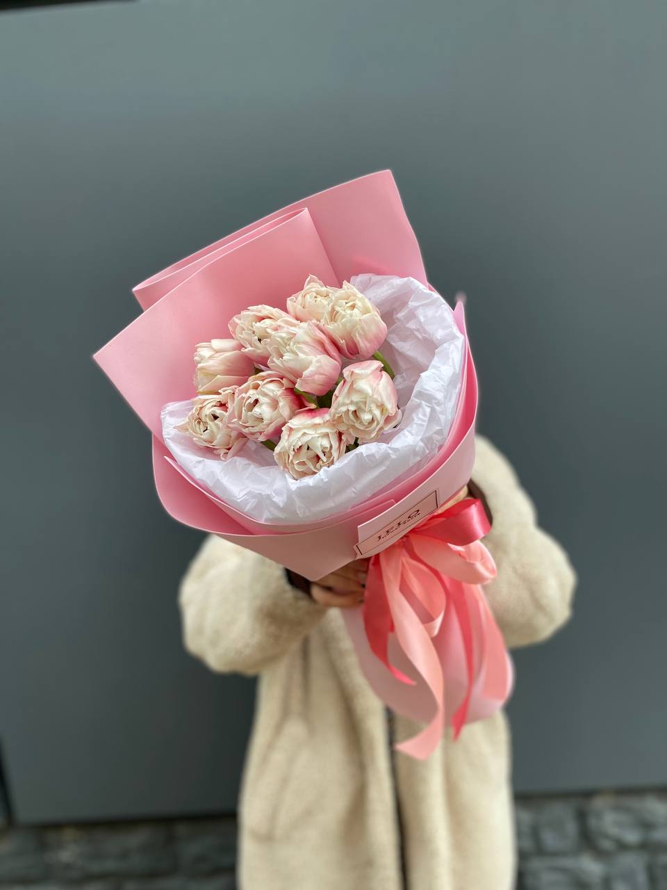 Девять тюльпанов в розовой гамме собраны в лаконичную композицию с мягким обрамлением. Бутоны держат форму и создают спокойный цветовой акцент в любом пространстве. Монобукет для тех, кто ценит простоту без лишних деталей.