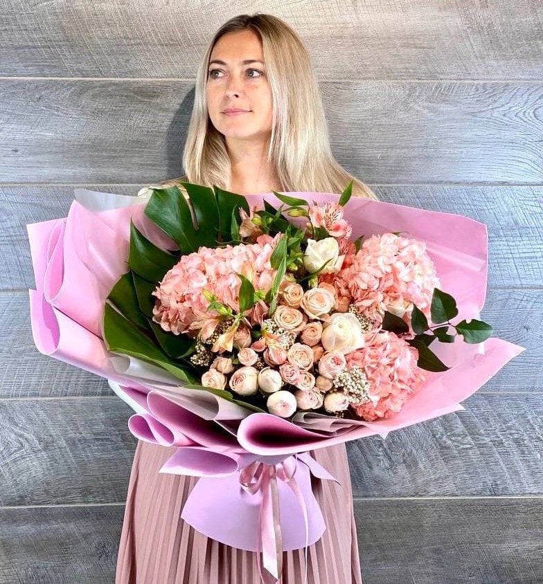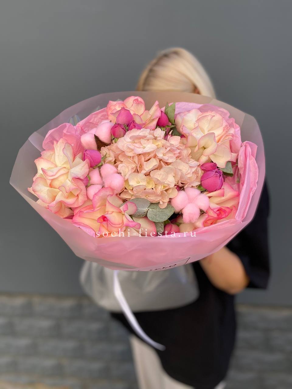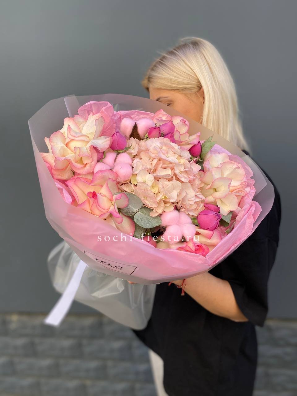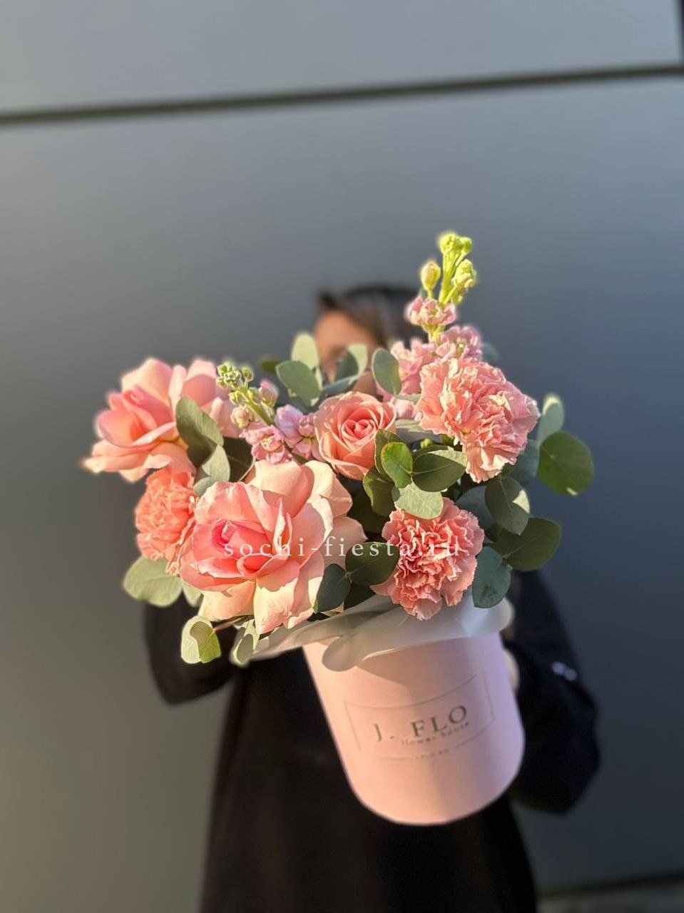 Для заказа товара "Дизайнерский цилиндр с гортензиями " с доставкой в Элисте нажмите