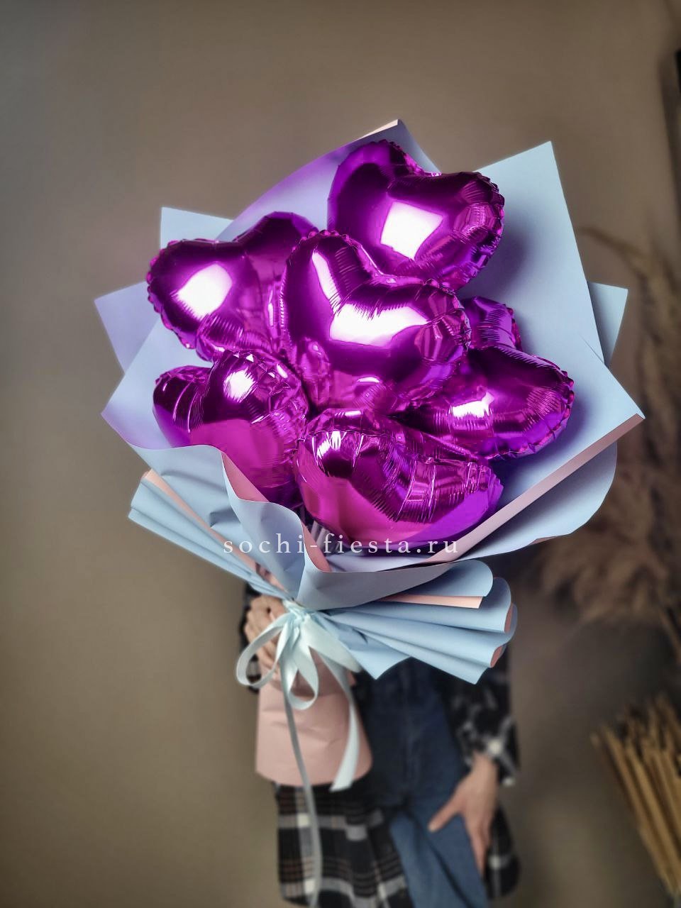 Шарики надуваются воздухом, не гелием! Размер композиции: 50х70см, размер одного шара 25см.
