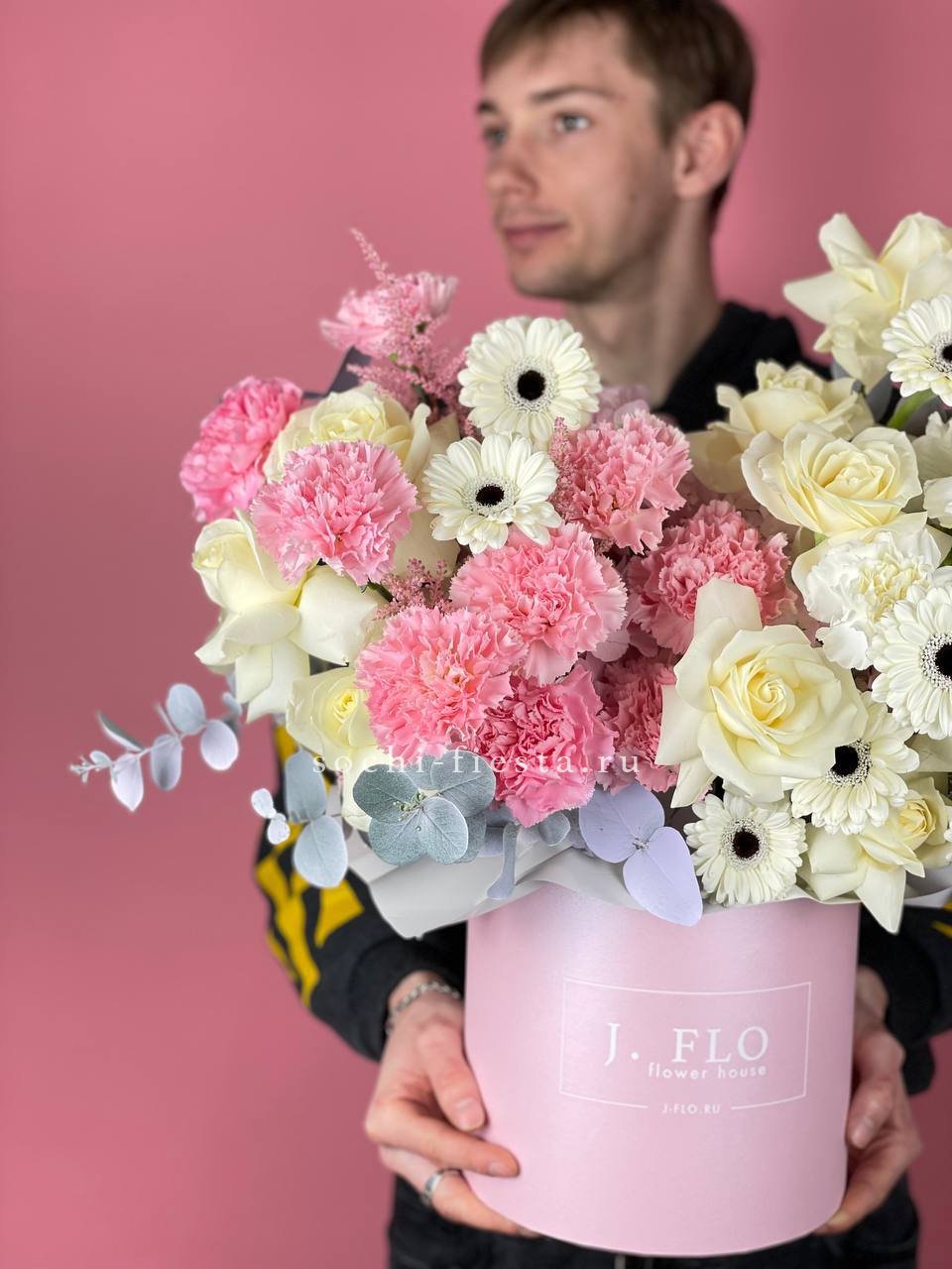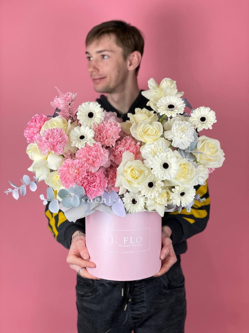 Глянцевая зеркальная поверхность отражает свет и пространство вокруг. Хромированный шар добавляет букету современное звучание и графичность.