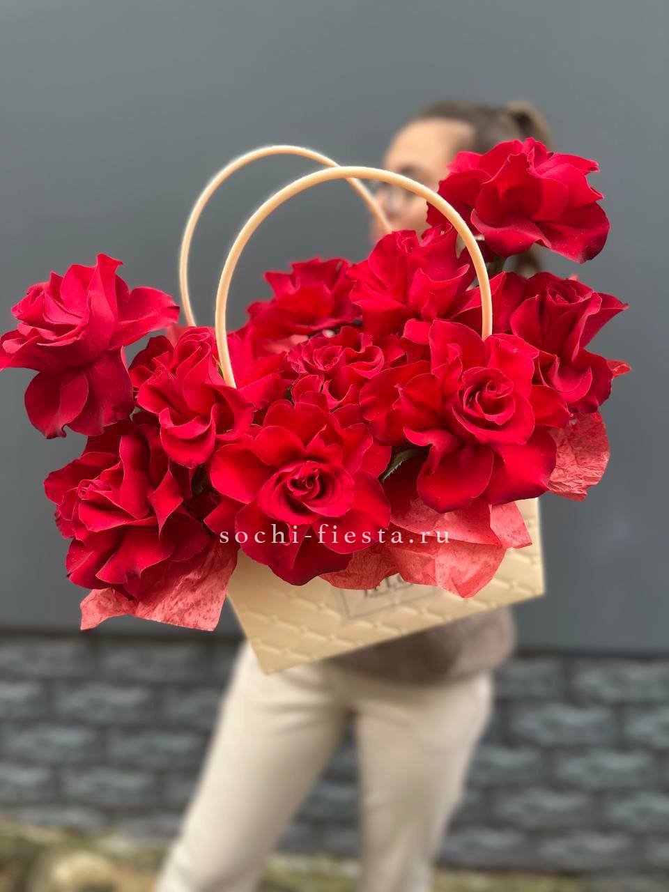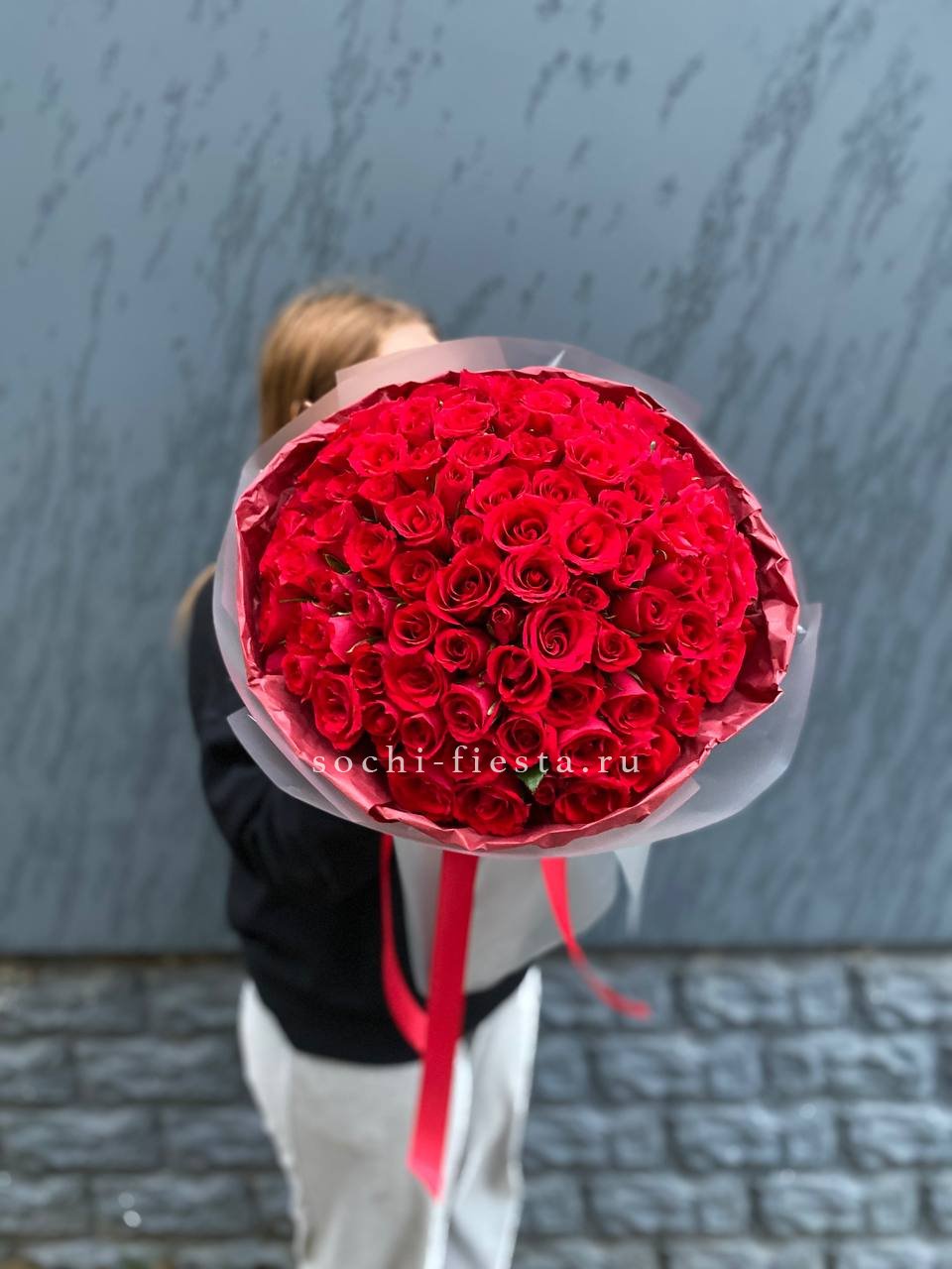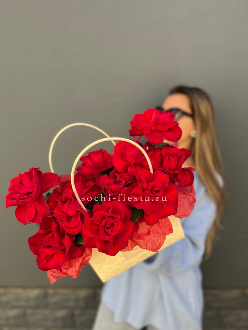 Двадцать пять вывернутых французских роз наполняют белый цилиндр графичной структурой. Бутоны раскрыты плотно, лепестки образуют многослойную текстуру с мягкими изгибами и глубиной.