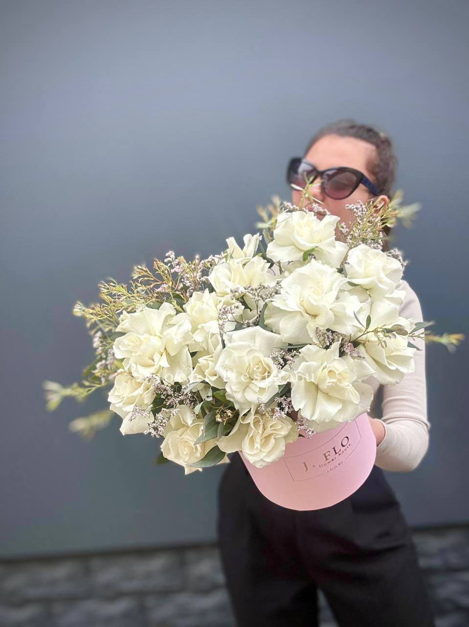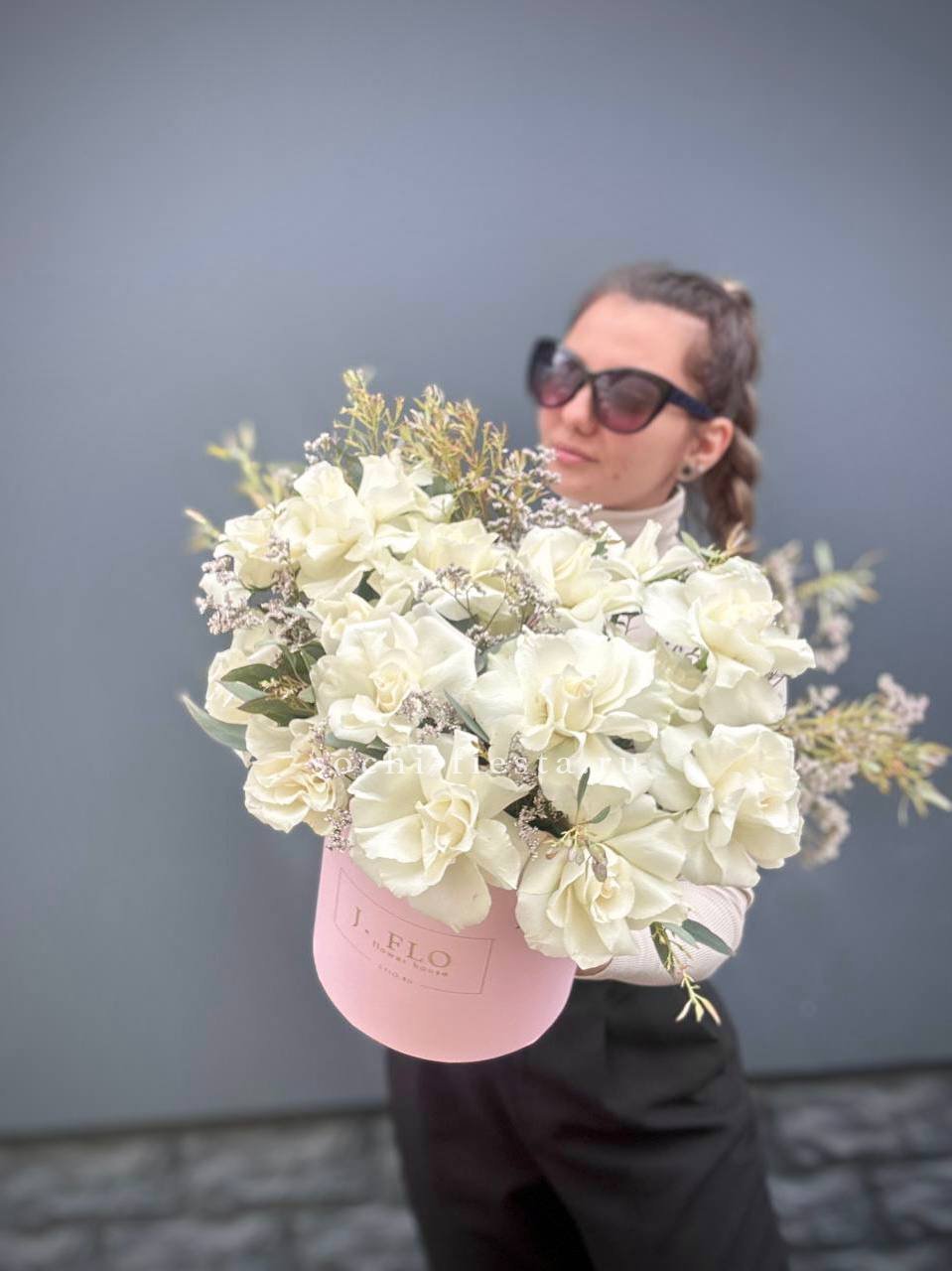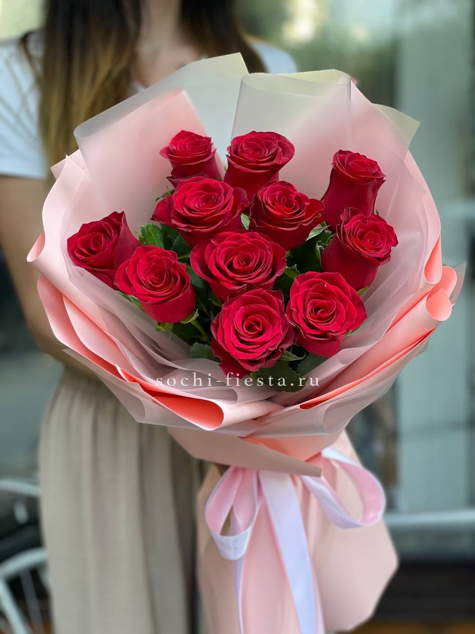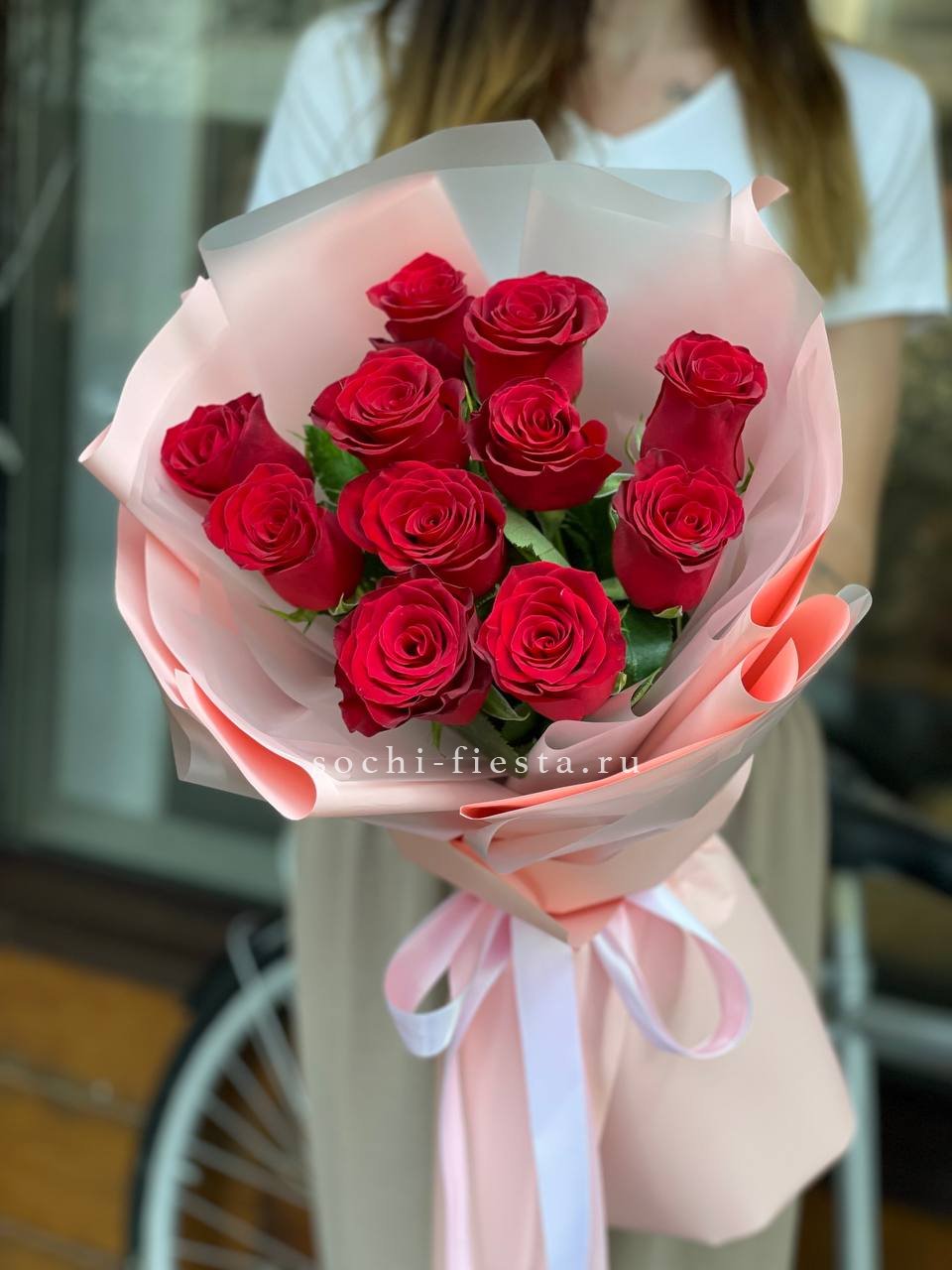 Пятнадцать розовых роз собраны в компактный бокс с мягкой бумагой. Округлая форма и аккуратная укладка делают композицию удобной для размещения на столе. Классика в современной подаче.
