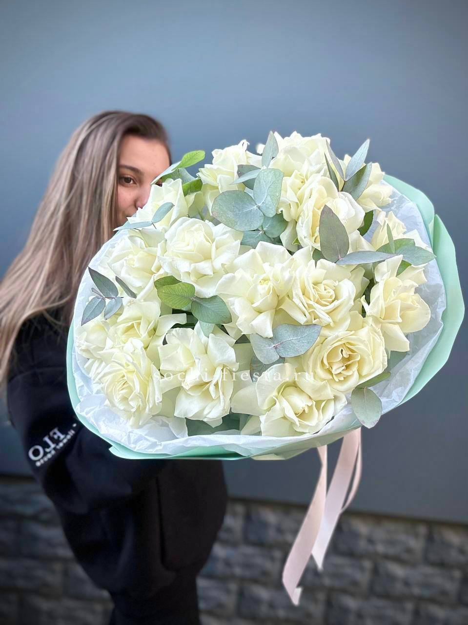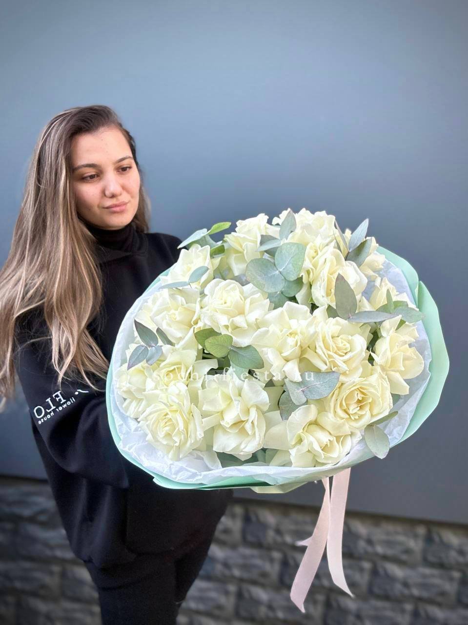 гортензия, французские розы, диантусы, эустома, цилиндр D16, бумага тишью.