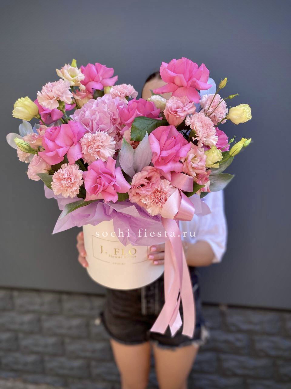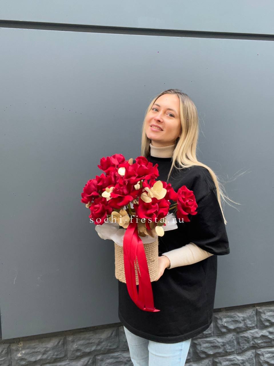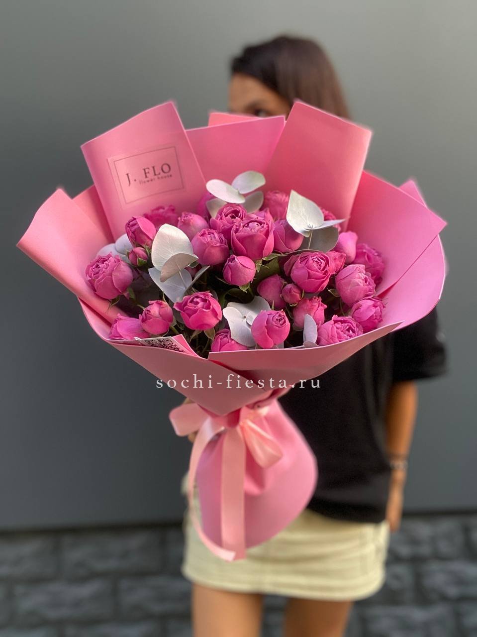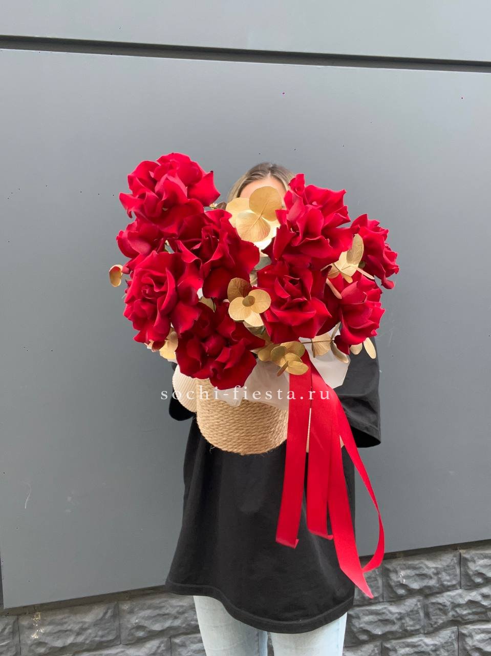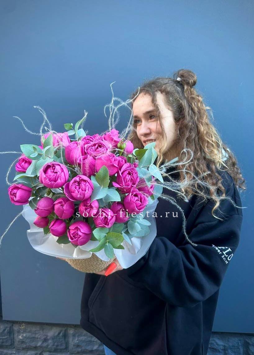 Для заказа товара "Пионовидные розы в джутовом кашпо " с доставкой в Элисте нажмите