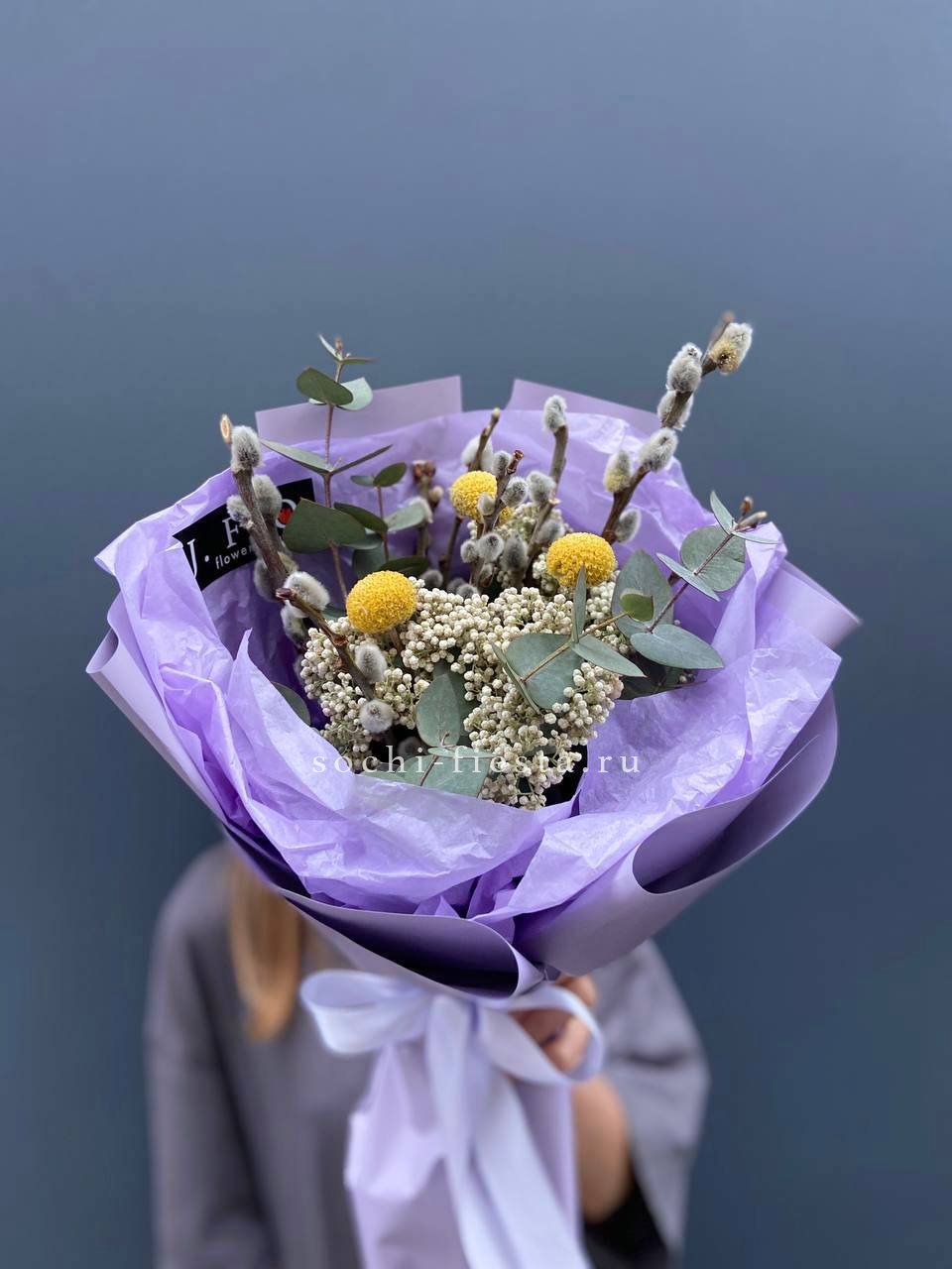 гортензия, диантус, розовая роза, эустома, гербера, корзина средняя, наполнение.