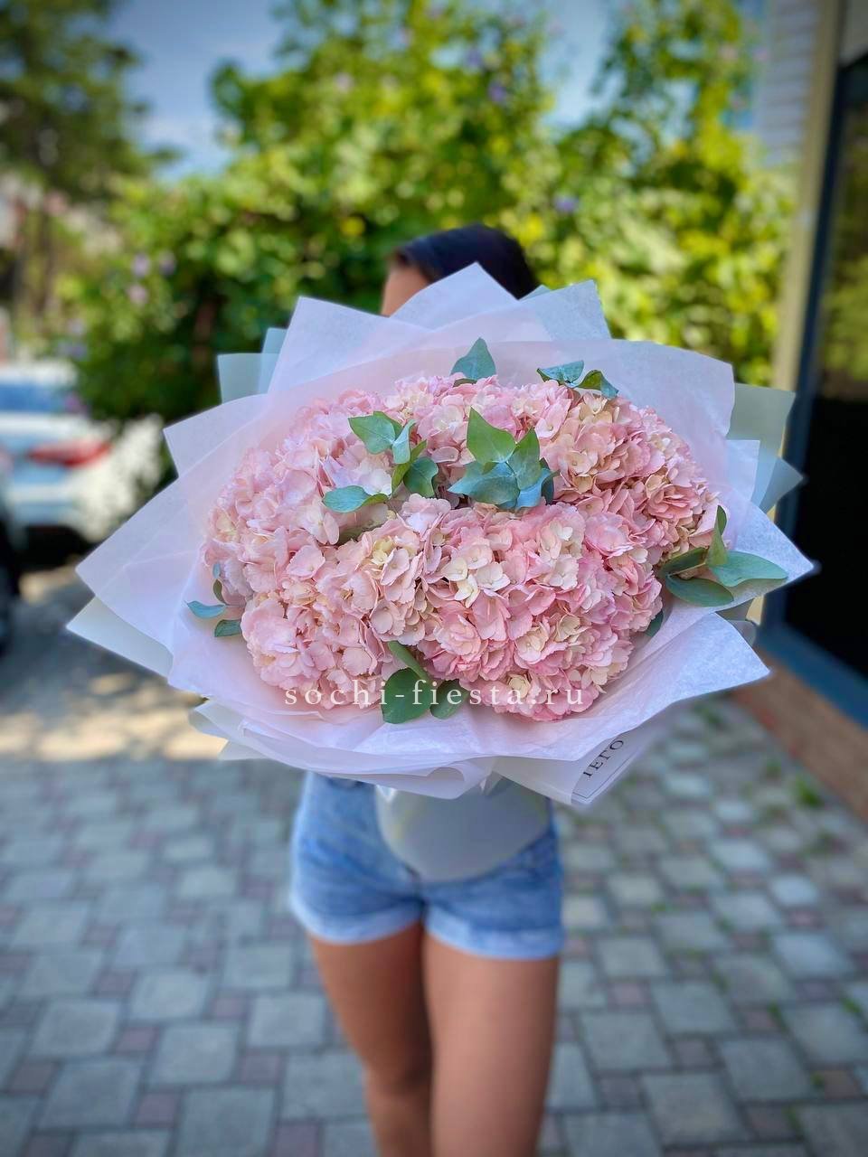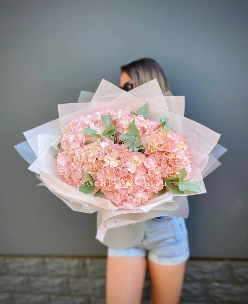5 розовых гортензий