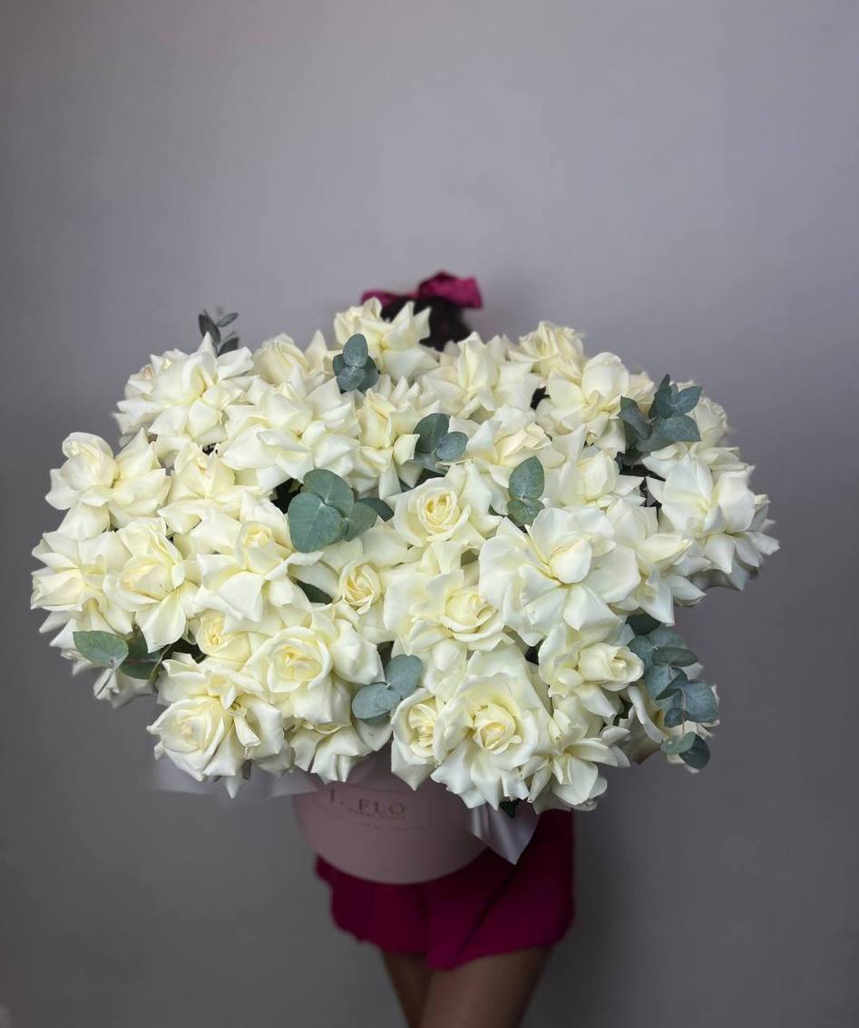 37 белых роз в боксе