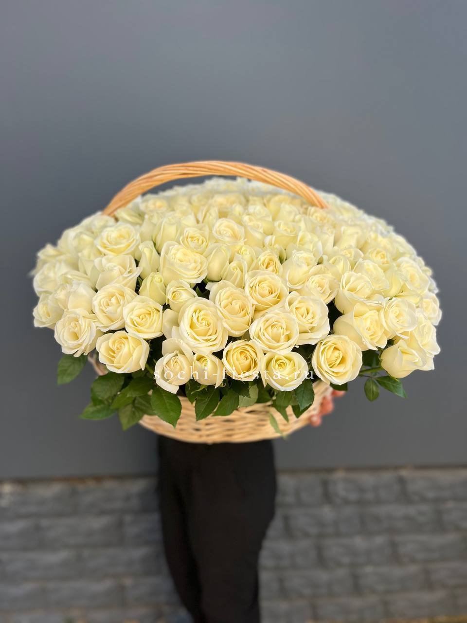 151 белая роза в корзине