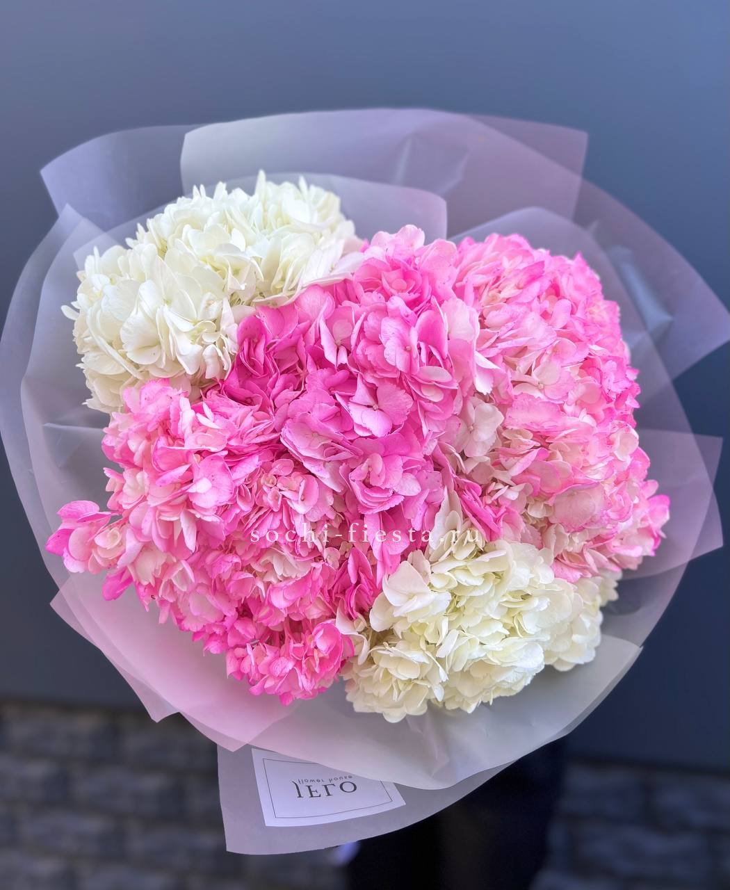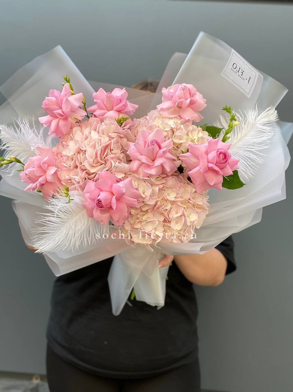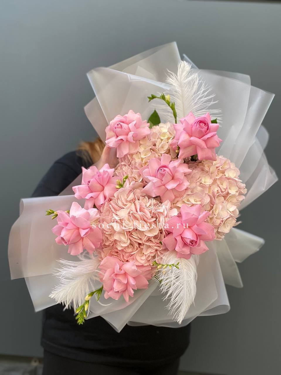 Букет из гортензий и розовых роз