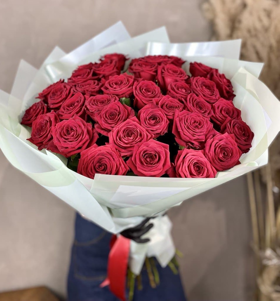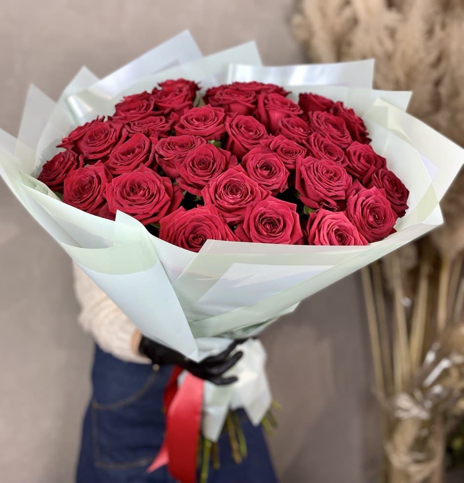 Переход от светлых до насыщенных розовых оттенков создает мягкую градацию в букете. Пятнадцать роз образуют воздушную композицию, которая наполняет пространство теплом.