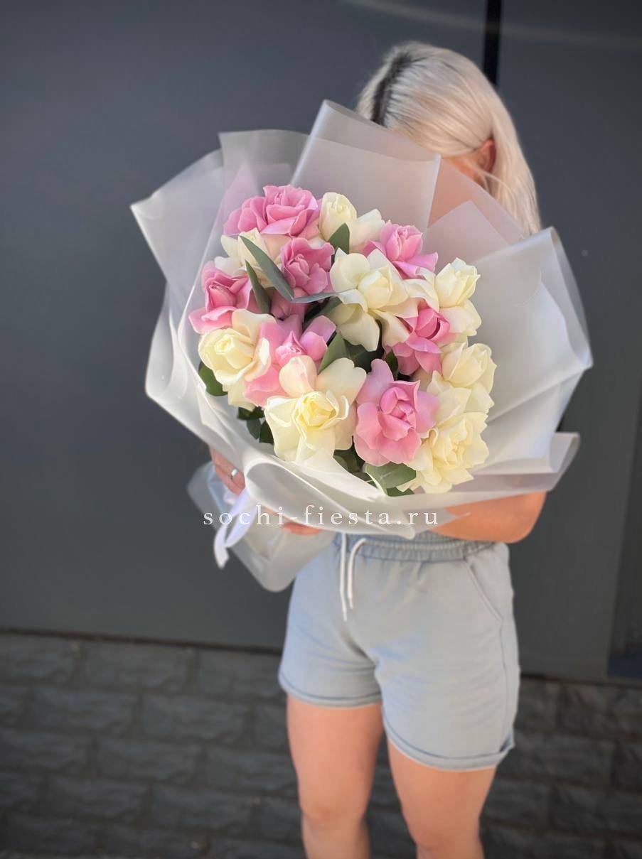 Для заказа товара "15 бело-розовых роз" с доставкой в Элисте нажмите