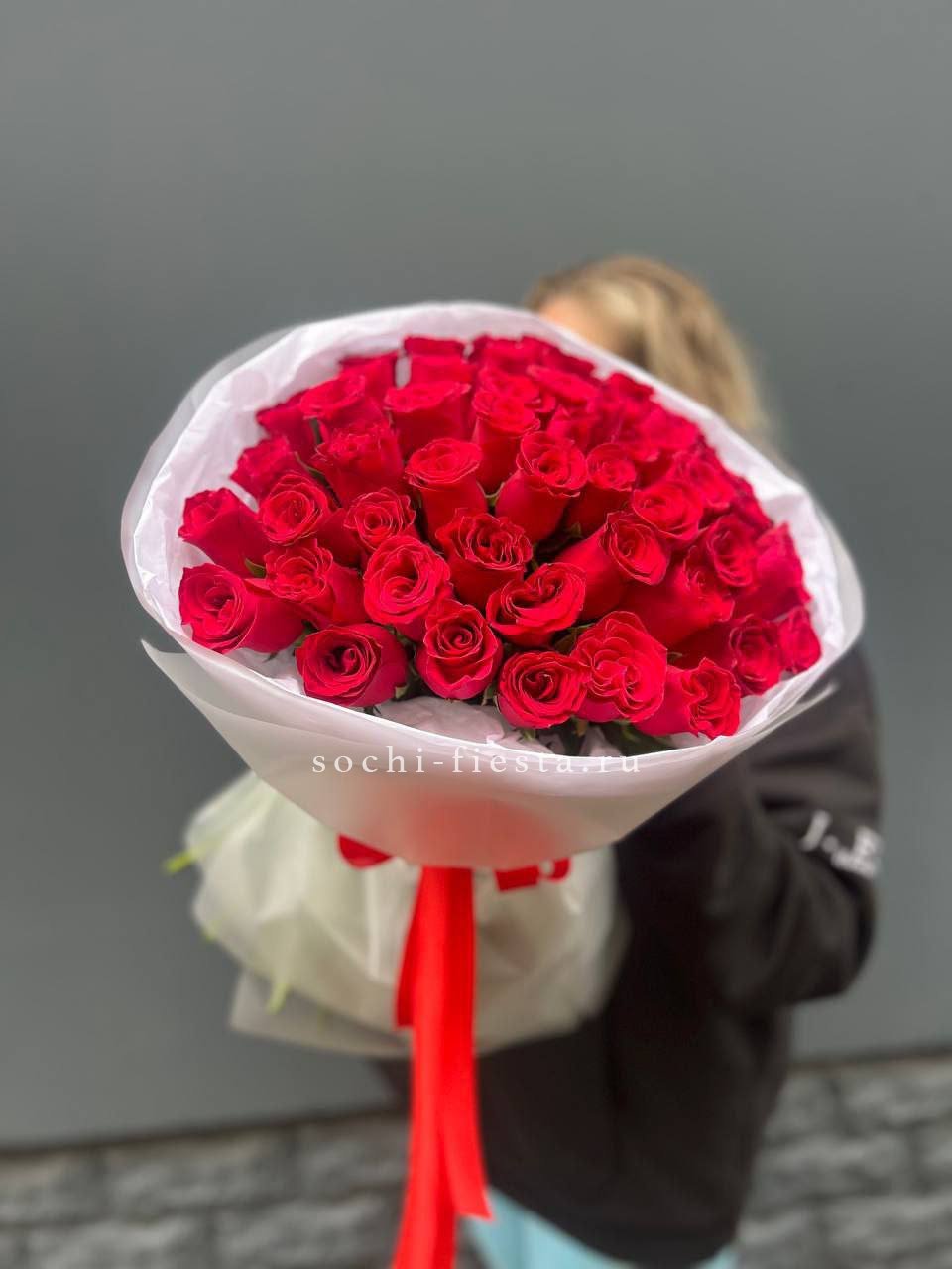 Для заказа товара "Букет красных роз "Наоми"" с доставкой в Элисте нажмите