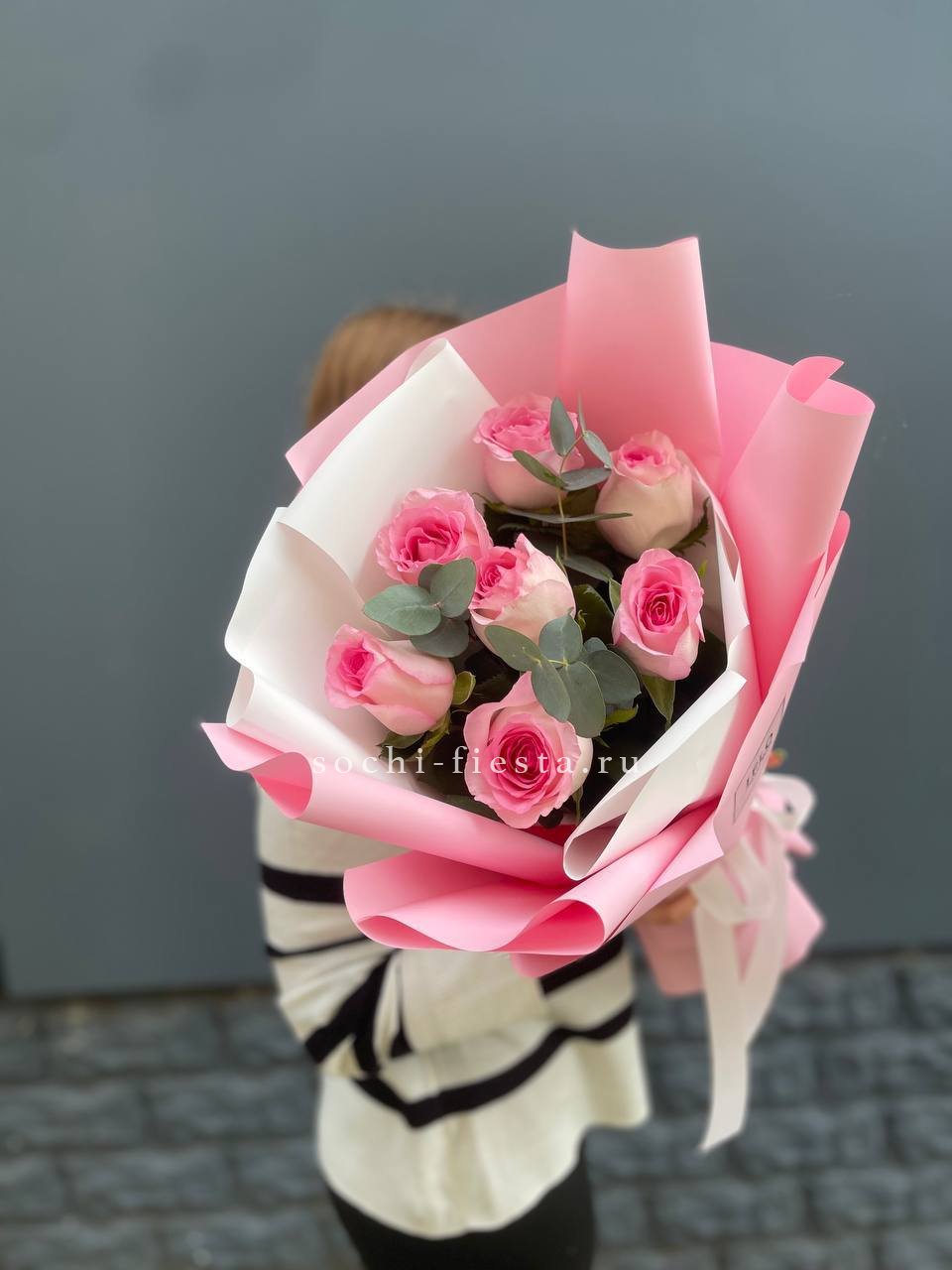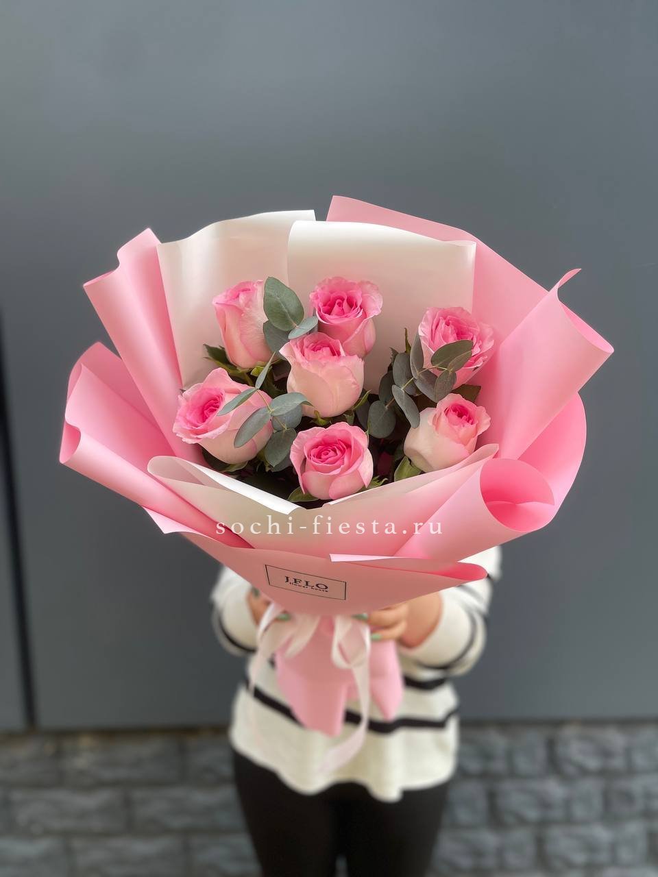Пятьдесят одна роза собрана в плотный монохромный букет, где каждый бутон создаёт общий объём и глубину. Розовый оттенок раскрывается по-разному в зависимости от света и угла обзора. Композиция впечатляет масштабом и цельностью формы.