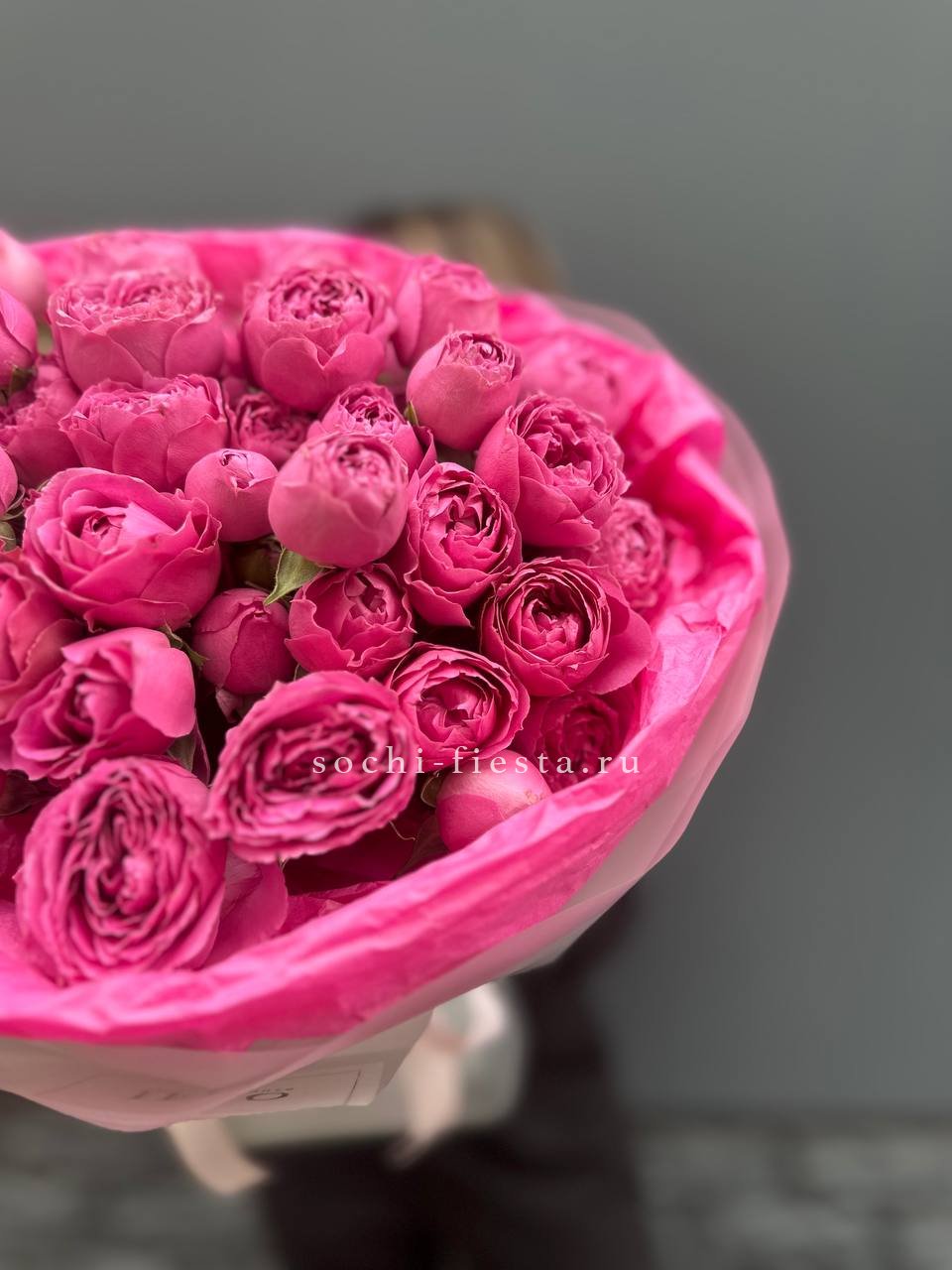 Пятнадцать веточек с множеством небольших бутонов формируют воздушную форму. Букет легко помещается в любую вазу и сохраняет свежесть долгое время благодаря природной стойкости кустовых сортов.