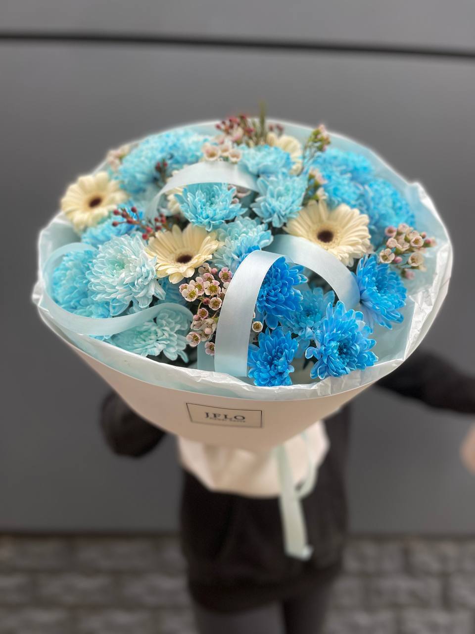 Девятнадцать веток пионовидных роз Мисти Баблс в лаконичной упаковке. Многослойные бутоны раскрываются воздушными розетками с переливами лаванды и пудры. Компактная форма букета удобна для размещения в любом интерьере.