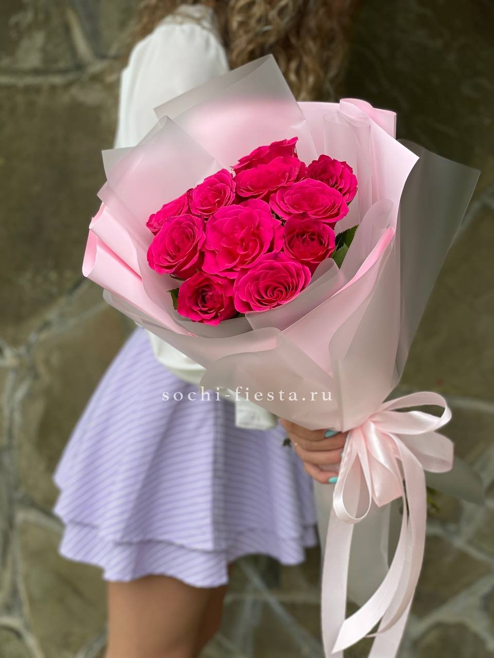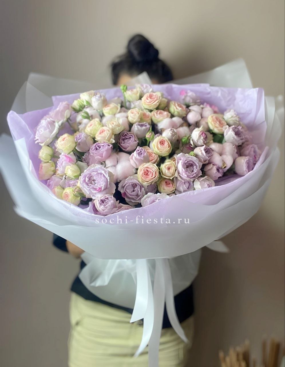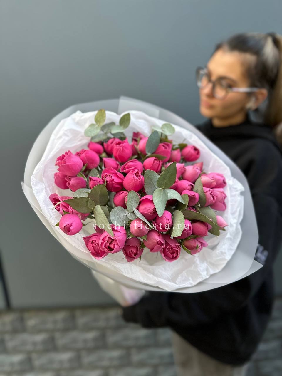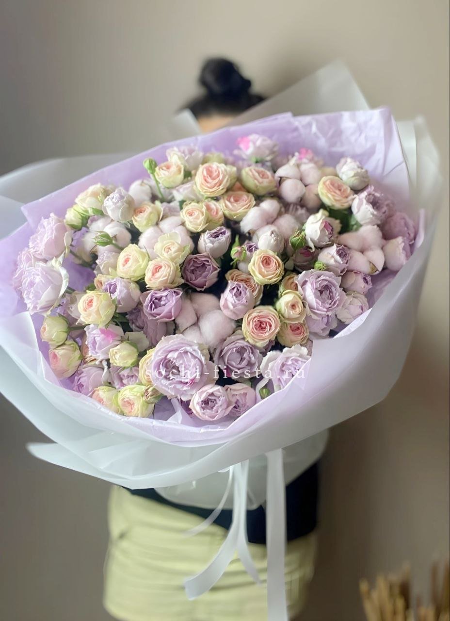 минимальный состав: кустовые розы 31шт., лента, упаковка на выбор.