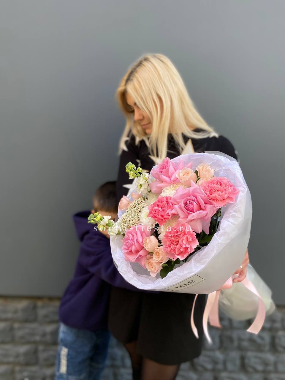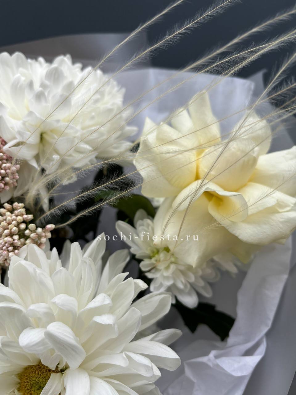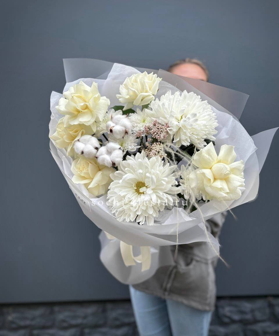 протея, декоративная зелень в зависимости от сезона, дизайнерская упаковка.